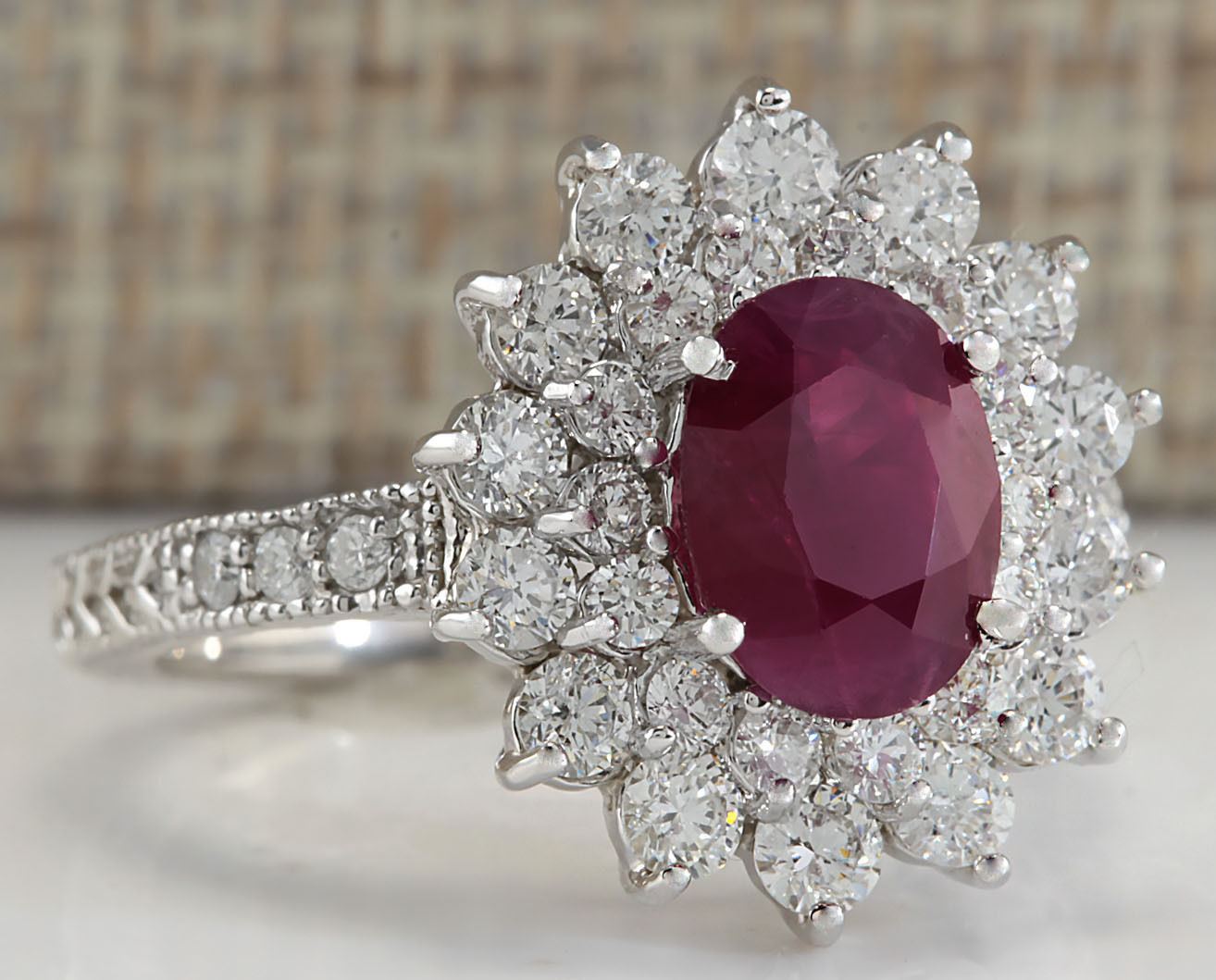 3.25 CTW Natural Ruby And Diamond Ring In 14K White Gold