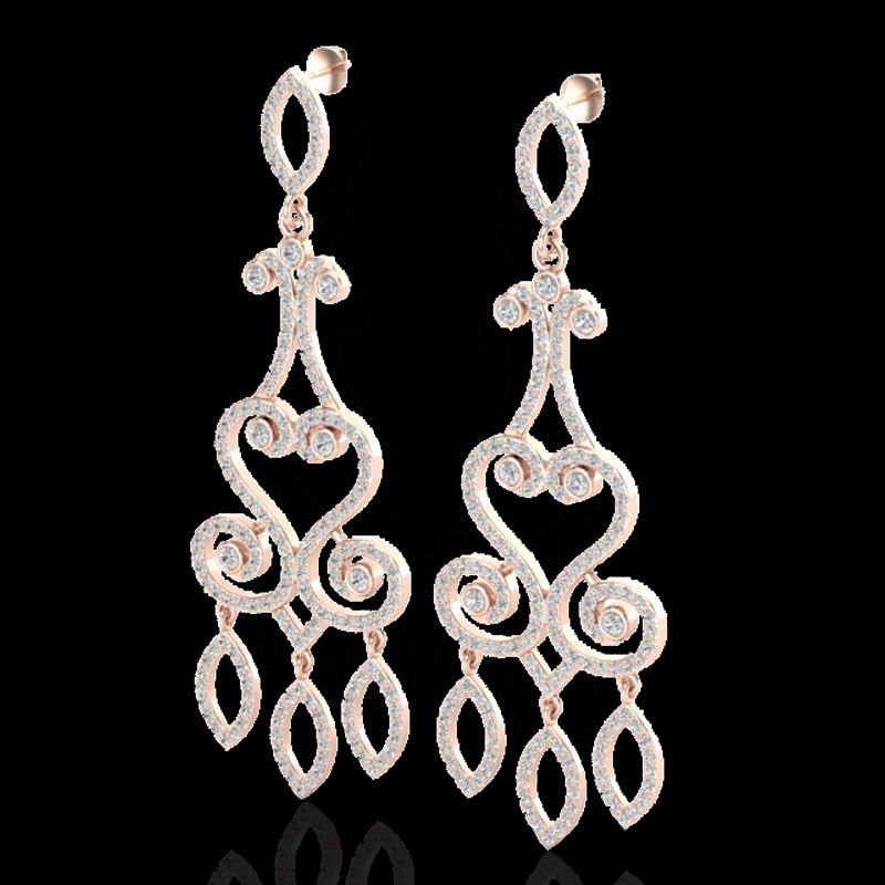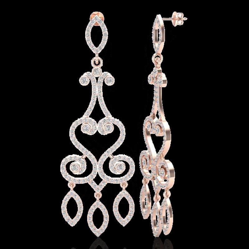 REF-253A6X -22416 ---- 3.25 CTW VS/SI Diamond Micro Pave Designer Earrings 14K Rose Gold ---- Luxury Designer Brand Earring Appraised at $13,950 Certificate Number US22416 14k Rose gold, Earring Size is 1 1/2 Inches, Earring measuring approx. 1 " X 1 1/2 " , weighing in total approx. 14 grams. Made in the USA and is stamped 14k, Main stone 0.3 carat total weight containing 12 pieces of H-J color with VS/SI quality Round shape cut Diamond , Stone #2 2.95 carat total weight containing 362 pieces of H-I color with VS/SI quality Round shape cut Diamond