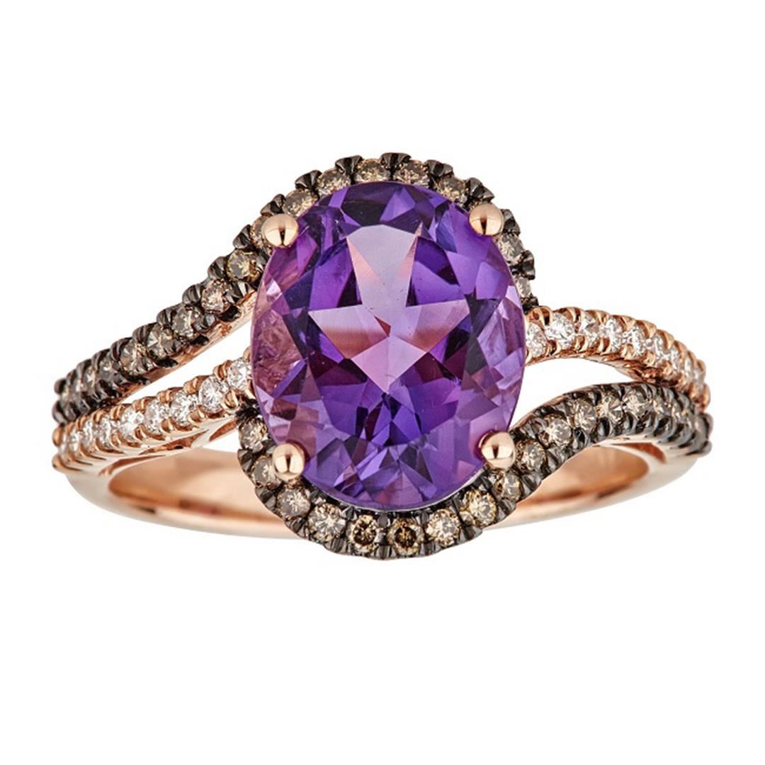 One Ring featuring: 10KT Rose Gold weighing 3.03 grams containing Amethyst with an approximate weight of 3.25ct, Brown Diamond with an approximate weight of 0.3ct, and Diamond with an approximate weight of 0.15ct.