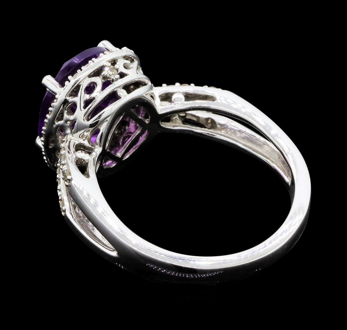 One lady's ring featuring: 14KT white gold weighing 4.8 grams containing one amethyst weighing 3.25ct and diamonds weighing 0.40ctw.
