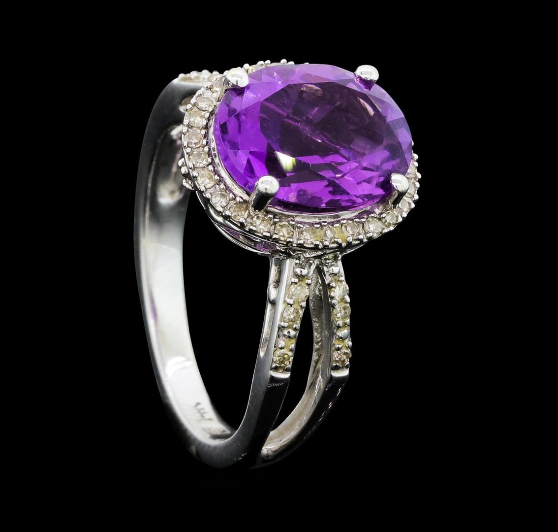 One lady's ring featuring: 14KT white gold weighing 4.8 grams containing one amethyst weighing 3.25ct and diamonds weighing 0.40ctw.