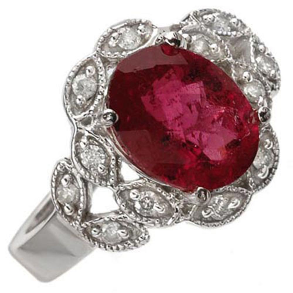 REF-54X8A - SKU: 10887 ---- 3.25 ctw Rubellite & Diamond Ring 10k White Gold