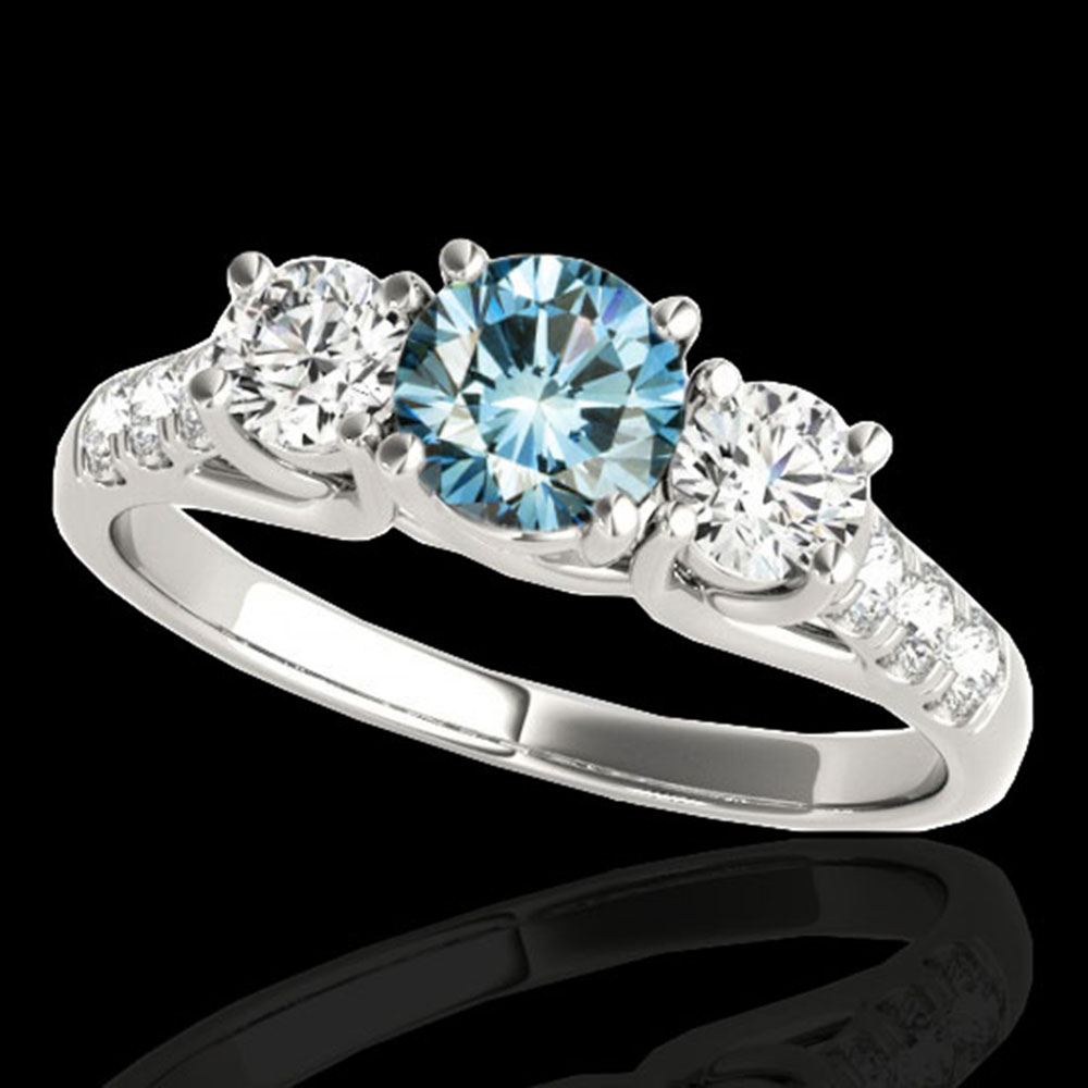 REF-295F9M - SKU: 35453 ---- 3.25 ctw SI Certified Fancy Blue Diamond 3 Stone Ring 10k White Gold