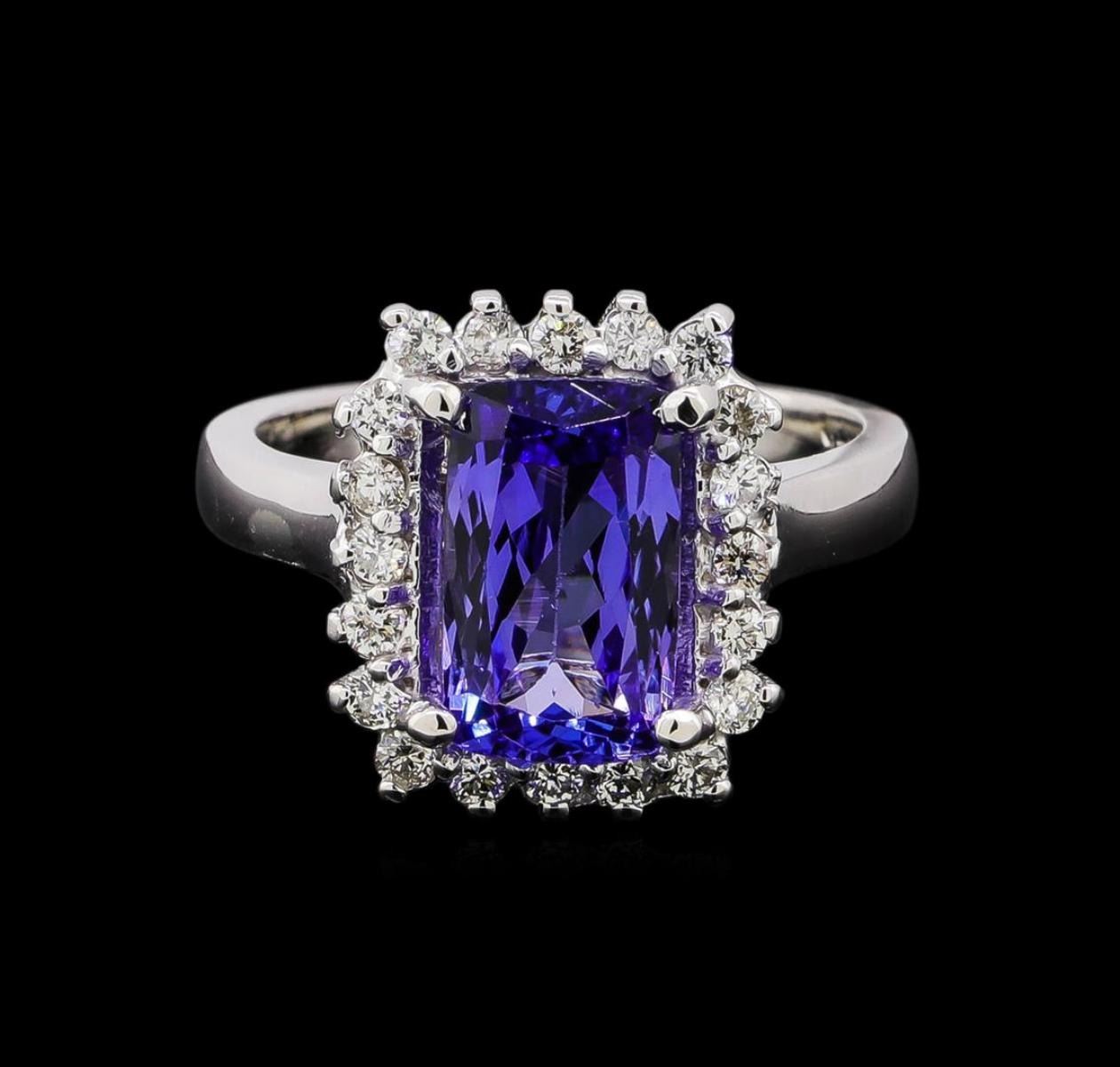 One ring : 14KT white gold weighing 6.00gm containing one tanzanite stone with a total weight of 3.25ct. and diamonds weighing 0.42ctw.