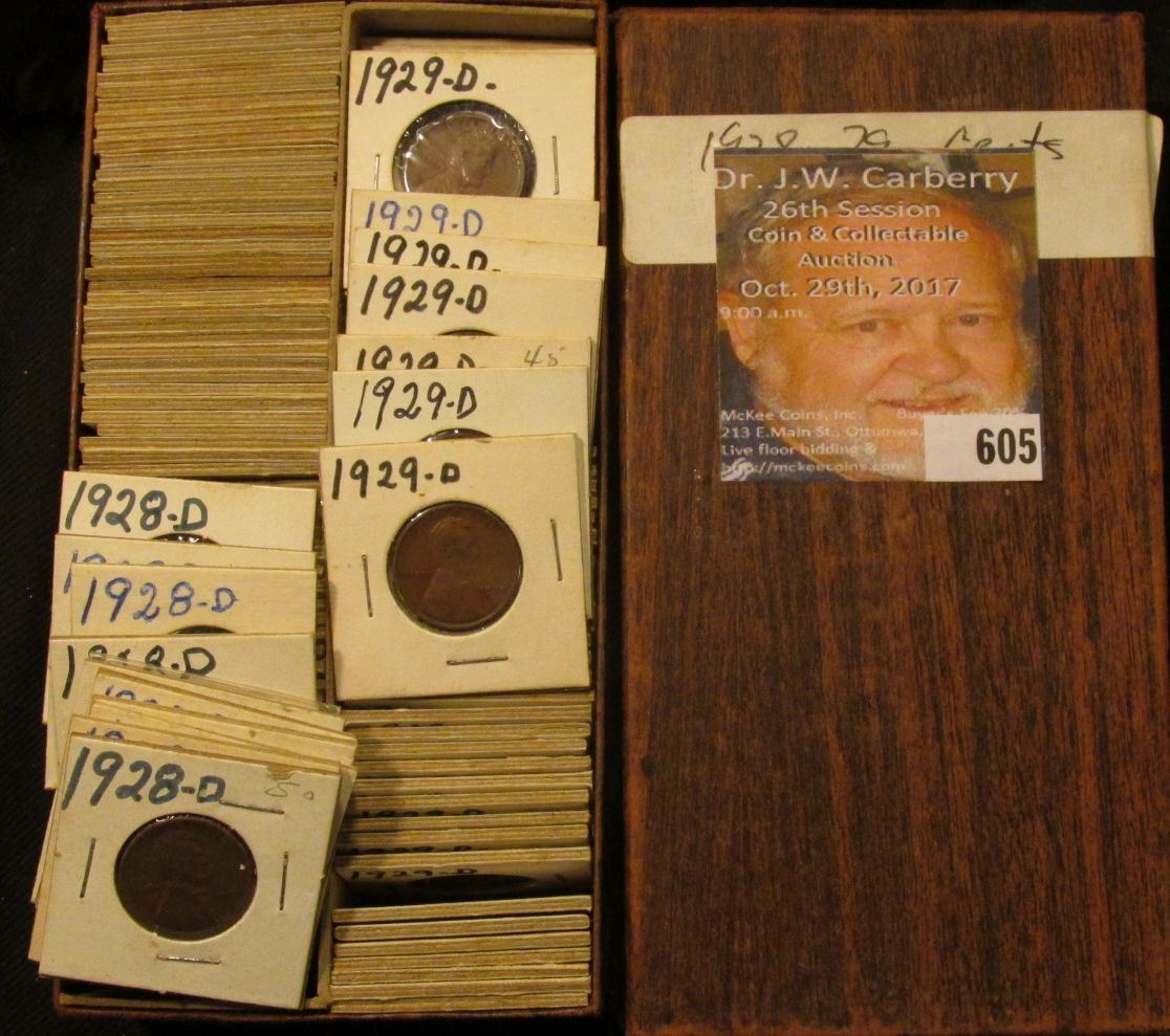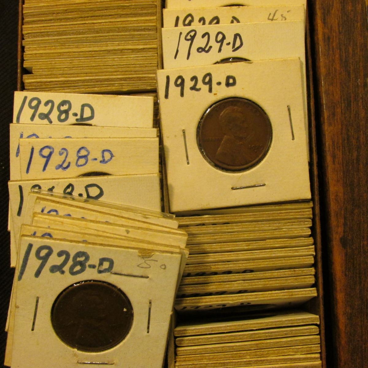 3.25" x 6.5" 1 1/2" x 1 1/2" Double Row Stock Box full of Lincoln Cents dating 1928-29.