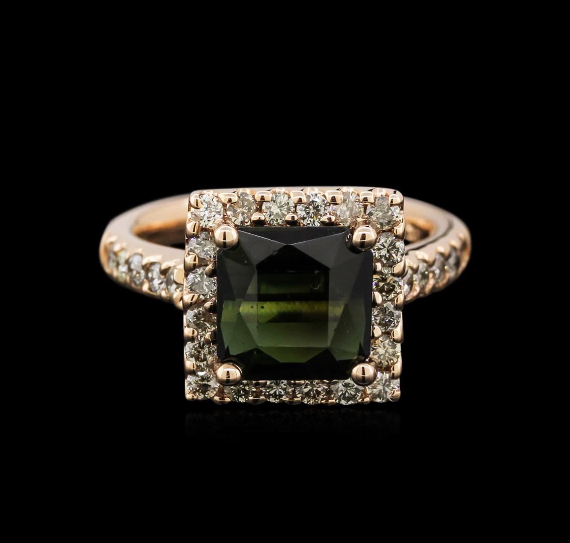 One ring featuring: 14KT rose gold weighing 8.00 grams containing one tourmaline with a total weight of 3.25ct and diamonds with a total weight of 0.81ct.