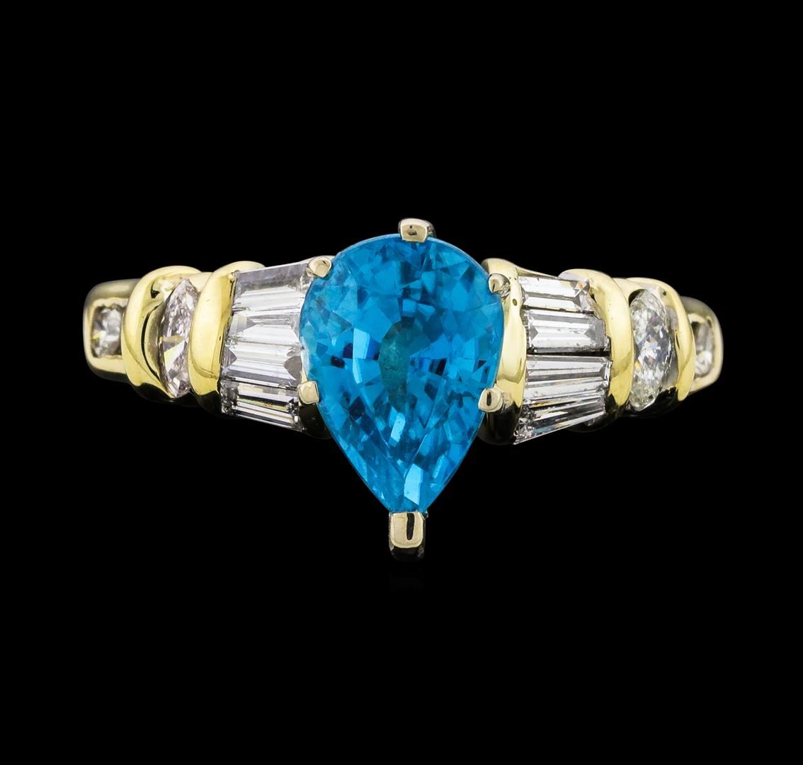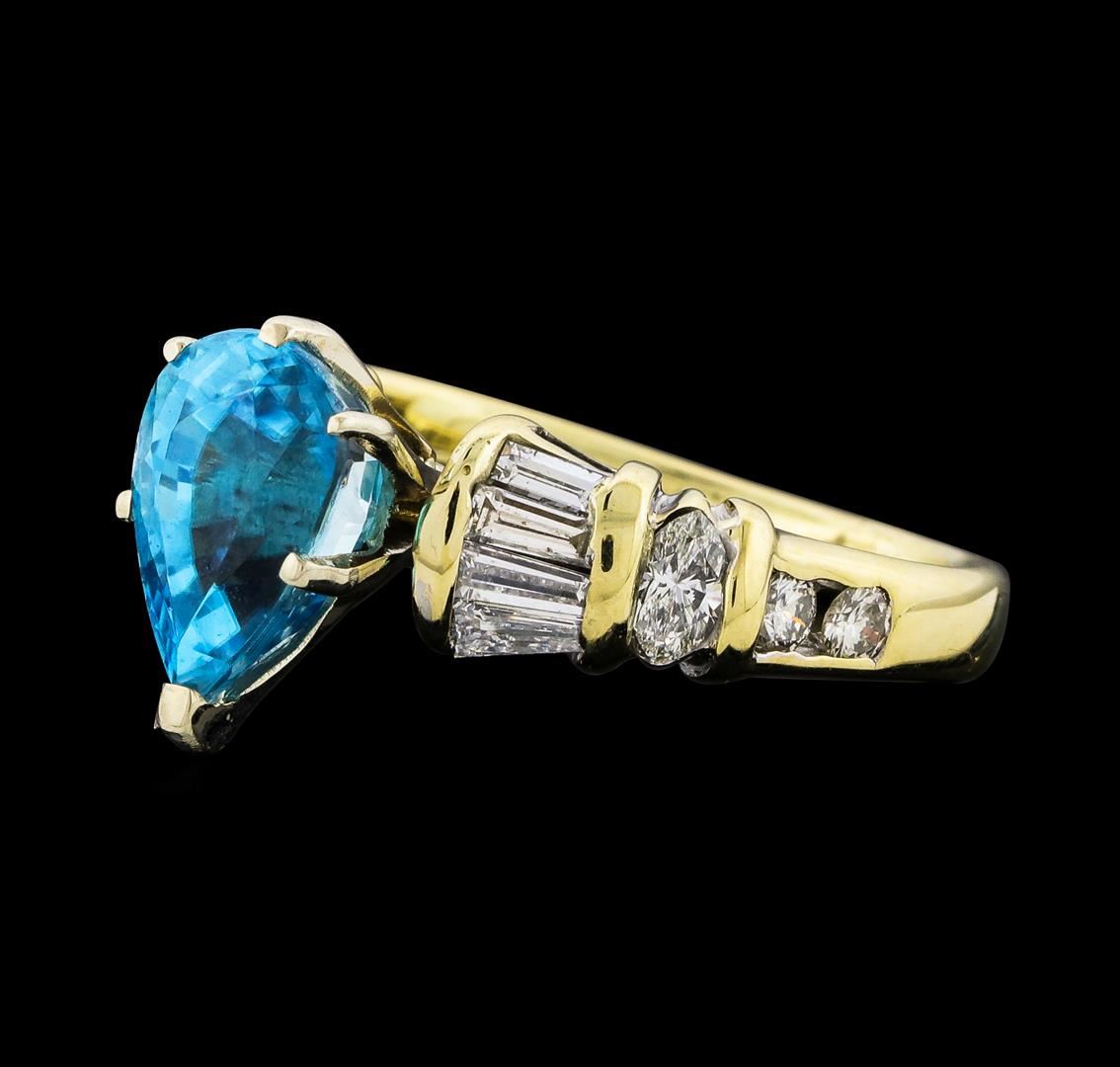 3.26 ctw Blue Zircon and Diamond Ring - 14KT Yellow Gold