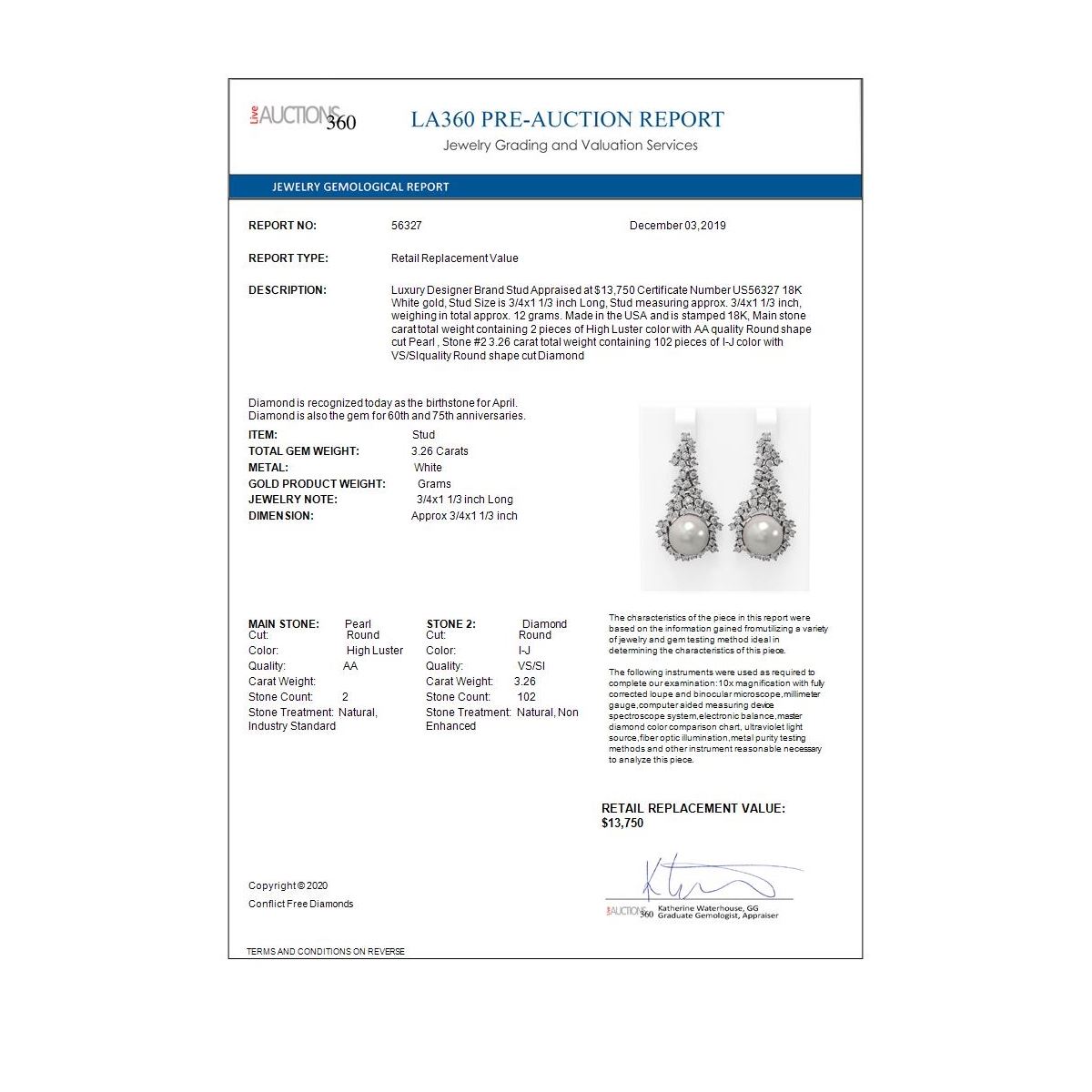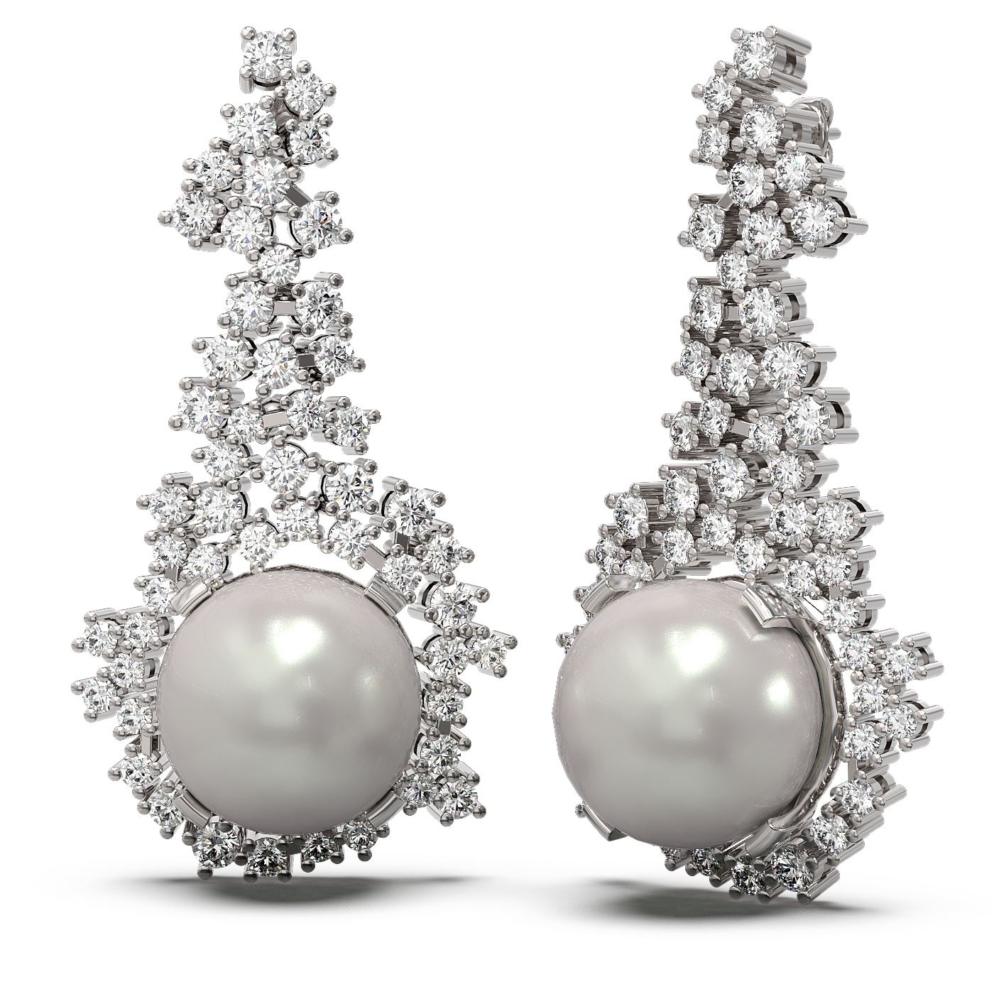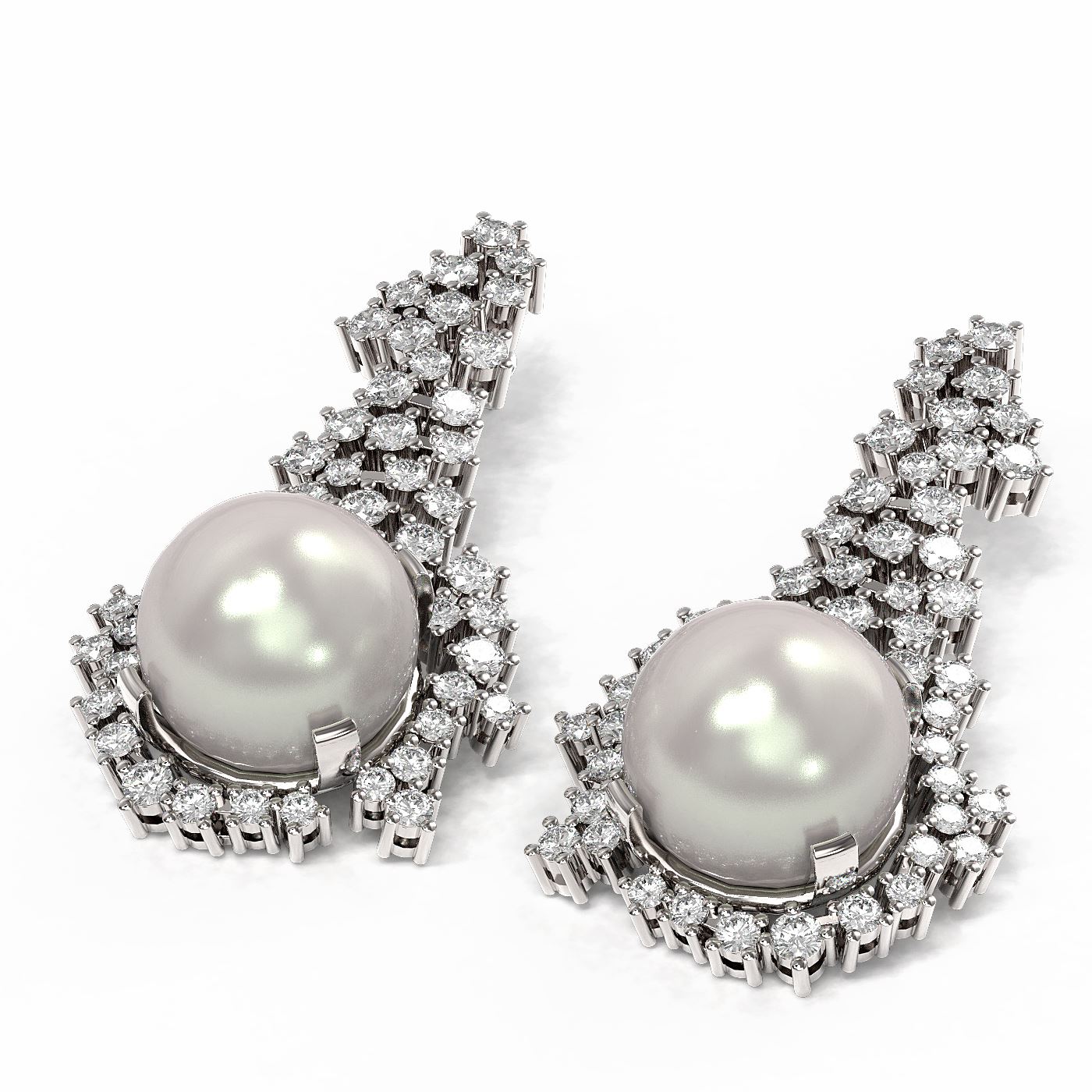 REF-278W2H - SKU: 56327 ---- 3.26 ctw Diamond & Pearl Earrings 18K White Gold