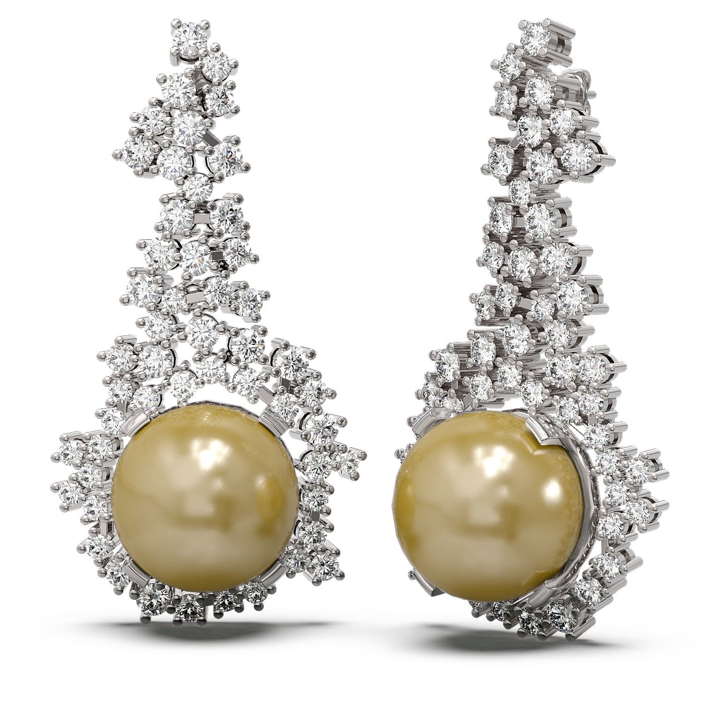 SKU: 56321 ---- 3.26 ctw Diamond & Pearl Earrings 18K White Gold