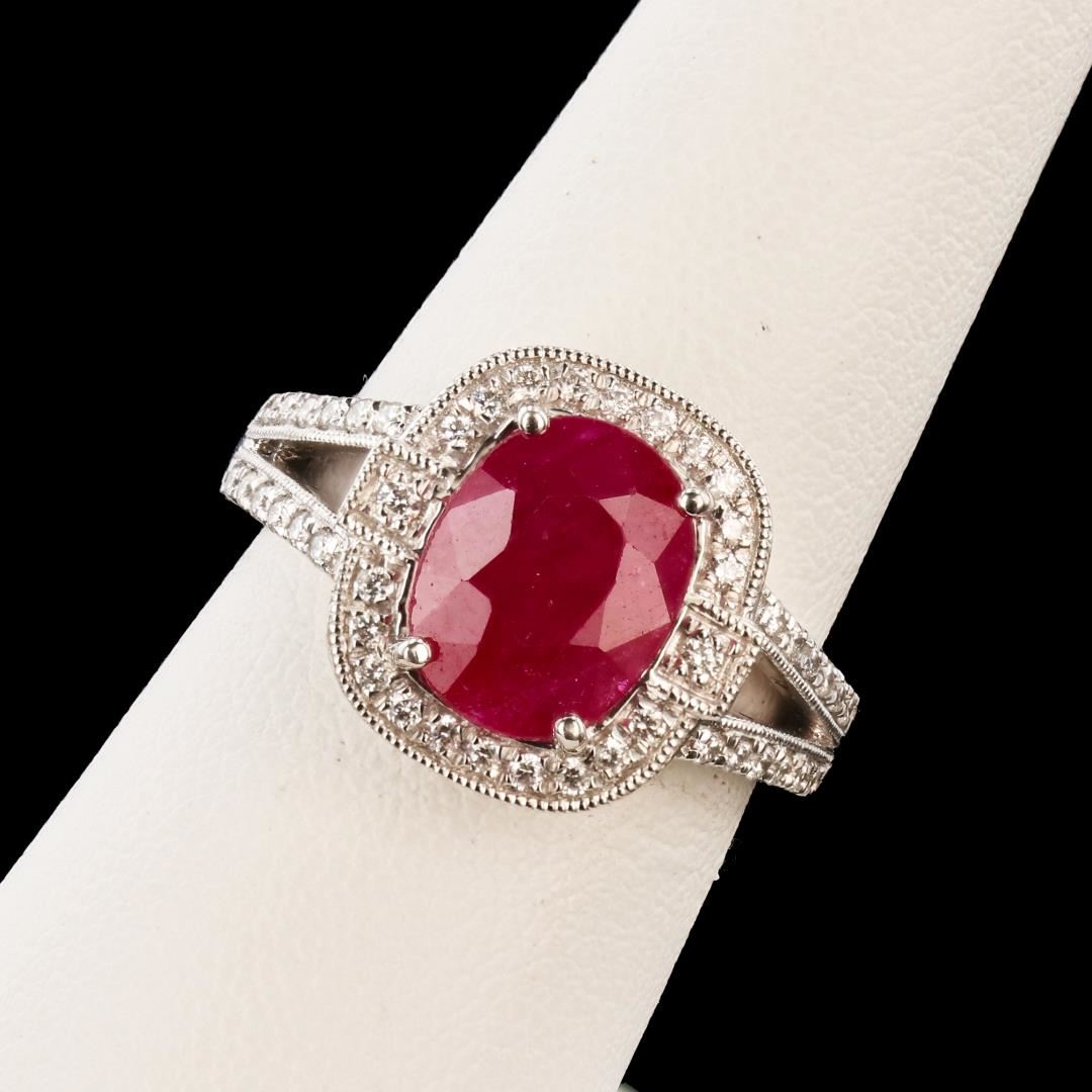 One polished, stamped, and tested platinum ring with a bright finish. The ring is mounted with: 1 genuine GIA certified ruby center stone weighing 3.26 carats, and 48 genuine round diamonds weighing approximately 0.30 carats. This item weighs 9.4 grams, condition is new, excellent workmanship. #MAIN GEMSTONE# GIA Report No.: 2221305433 Species: Natural Corundum Variety: Ruby Geographic Origin: Mozambique Shape: Oval Cutting Style: Brilliant Cut Crown, Step Cut Pavilion Measurements: 10.07 x 7.81 x 4.2mm Weight: 3.26 carats Color: Red Transparency: Translucent Treatment: Heat with Residues Refractive Index: 1.762 - 1.770 DR Birefringence: 0.008 - 0.010 Hardness: 9 #ADJACENT GEMSTONES ON RING# Identity: Natural Diamond Shape: Round Cling Style: Brilliant Cut Quantity: 48 Diamonds Measurements: 1.0 - 1.2mm Total Weight: 0.30 carats. Clarity Grade: VSI - VS2 Color Grade: G-H Refractive Index: 2.418 Hardness: 10 RUBY WEIGHT: 3.26 ct TOTAL DIAMOND WEIGHT: 0.30 cts WEIGHT OF ITEM: 9.4 grams METAL: Platinum Size: 6 1/2