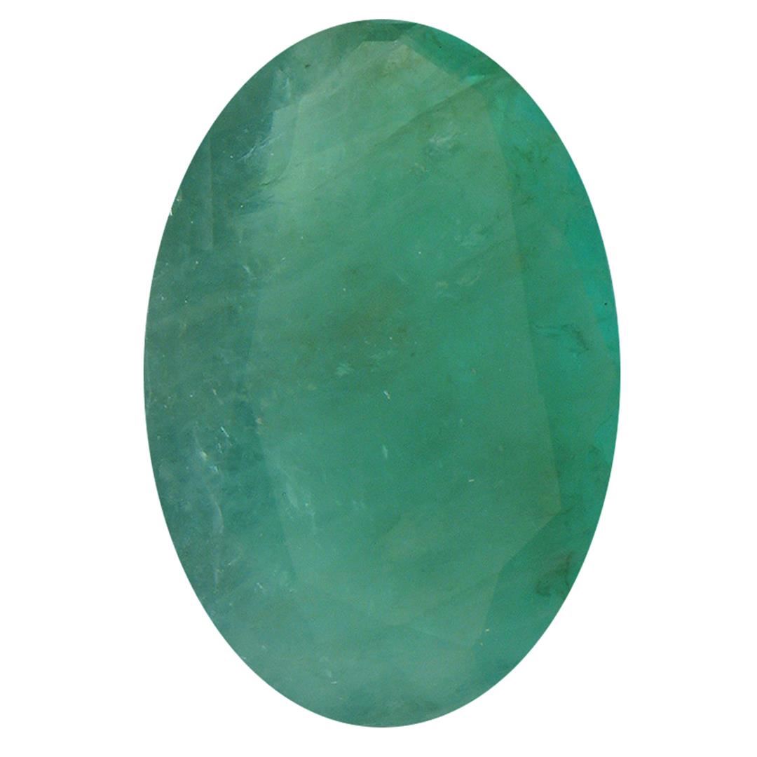 One oval cut natural emerald, measuring 13.00 x 9.00 x 4.00mm, exact weight 3.26ct., clarity is heavily included, type III, medium dark, very slightly grayish, very slightly bluish green color, (GIA vslbG 6/3) Westfield Appraised at $1,495.00.