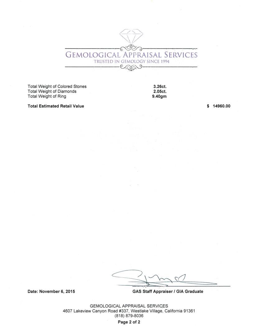 Not all Jewelry, watches or loose stones are appraised and the appraisals are provided for bidders only in certain instances at the discretion of SAA. Our appraisals are conducted by independent third-party appraisal firms. Such firms may be certified GIA Gemologists or have education in the industry or alternative certifications. Appraisals should be used for verification of gemstone and/or metal weight, size, and grade only, not actual value for resale or insurance purposes. Appraisal value should be not considered for actual value, as price varies greatly from retail locations and other merchants in different geographic locations. All Items auctioned by SAA should not be purchased with a view or expectation toward resale for appraisal price given, or to make a profit. The ultimate value for which an item can be resold may vary drastically from the appraisals listed by SAA.
