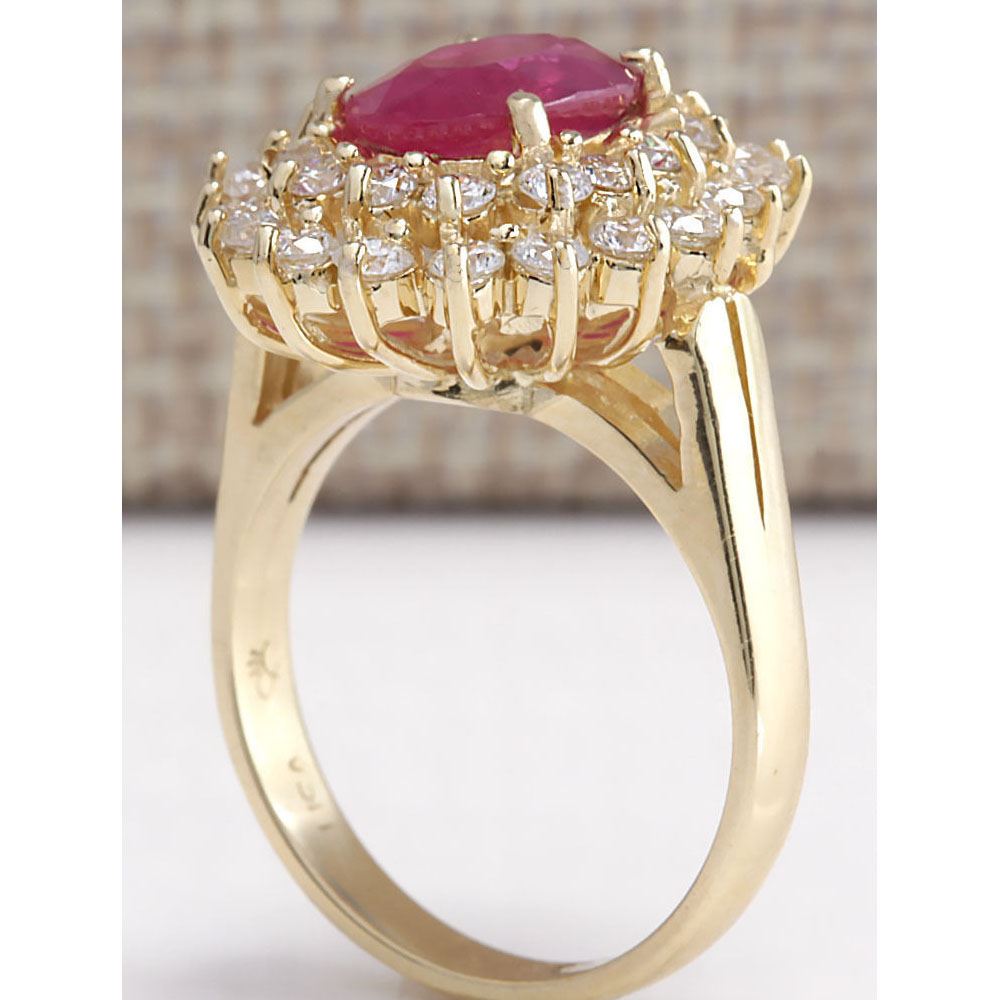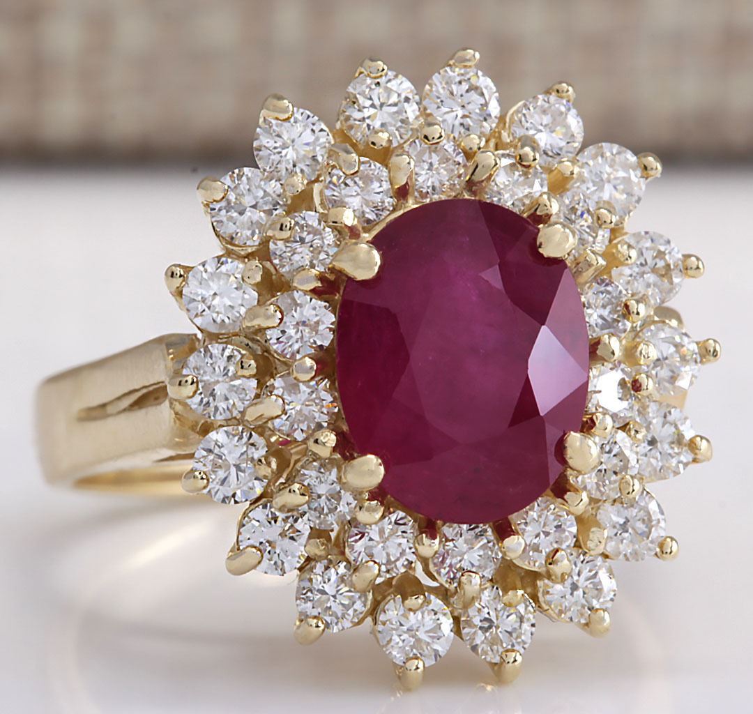 3.27 CTW Natural Ruby And Diamond Ring 14K Solid Yellow Gold
