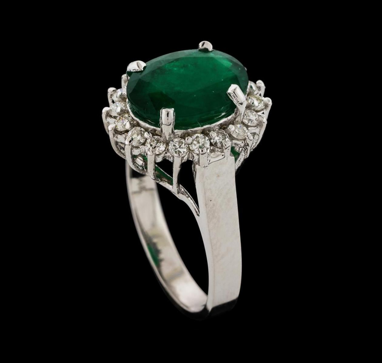 One ring : 14KT white gold weighing 4.94gm containing one emerald center stone with a total weight of 3.27ct and side diamonds weighing 0.47ctw.