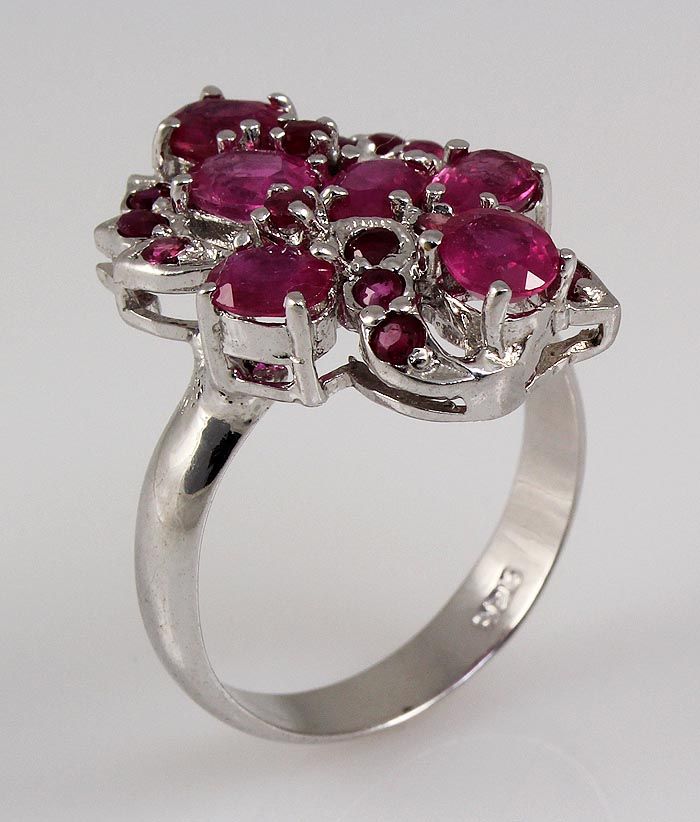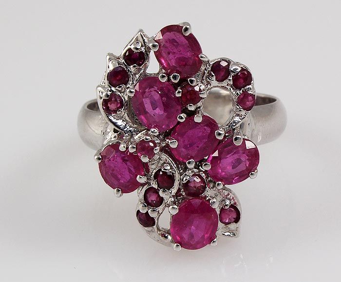 3.27ctw Ruby Sturdy Cluster Princess Silver Ring 4.24g **|**|** Natural Ruby Corrundum Gemstone 6pcs Oval 5x4mm & 13pcs Round 1.5mm in Silver Ring; Size: 8.5 ; MSRP: $500