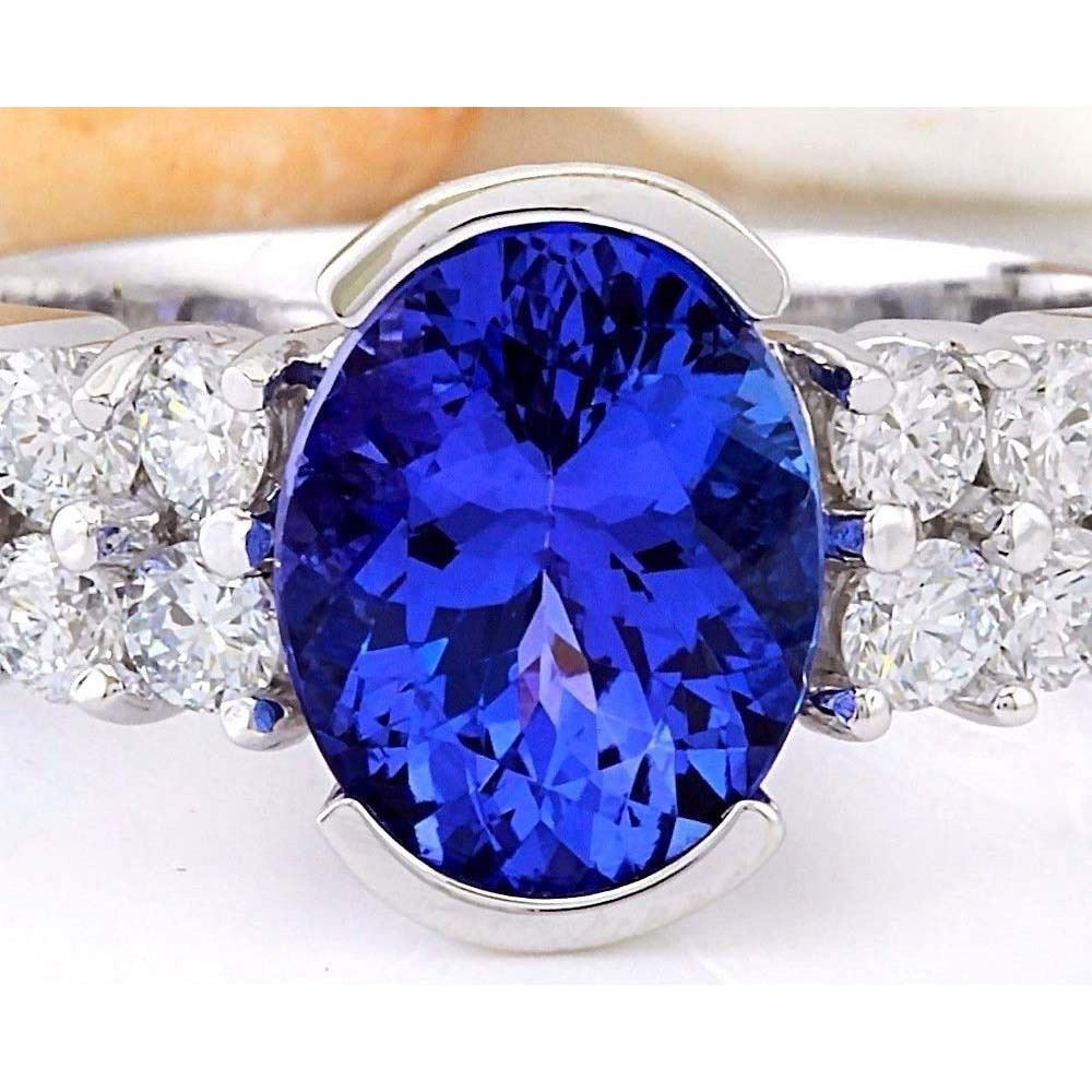 3.28 Carat Natural Tanzanite 14K Solid White Gold Diamond Ring
