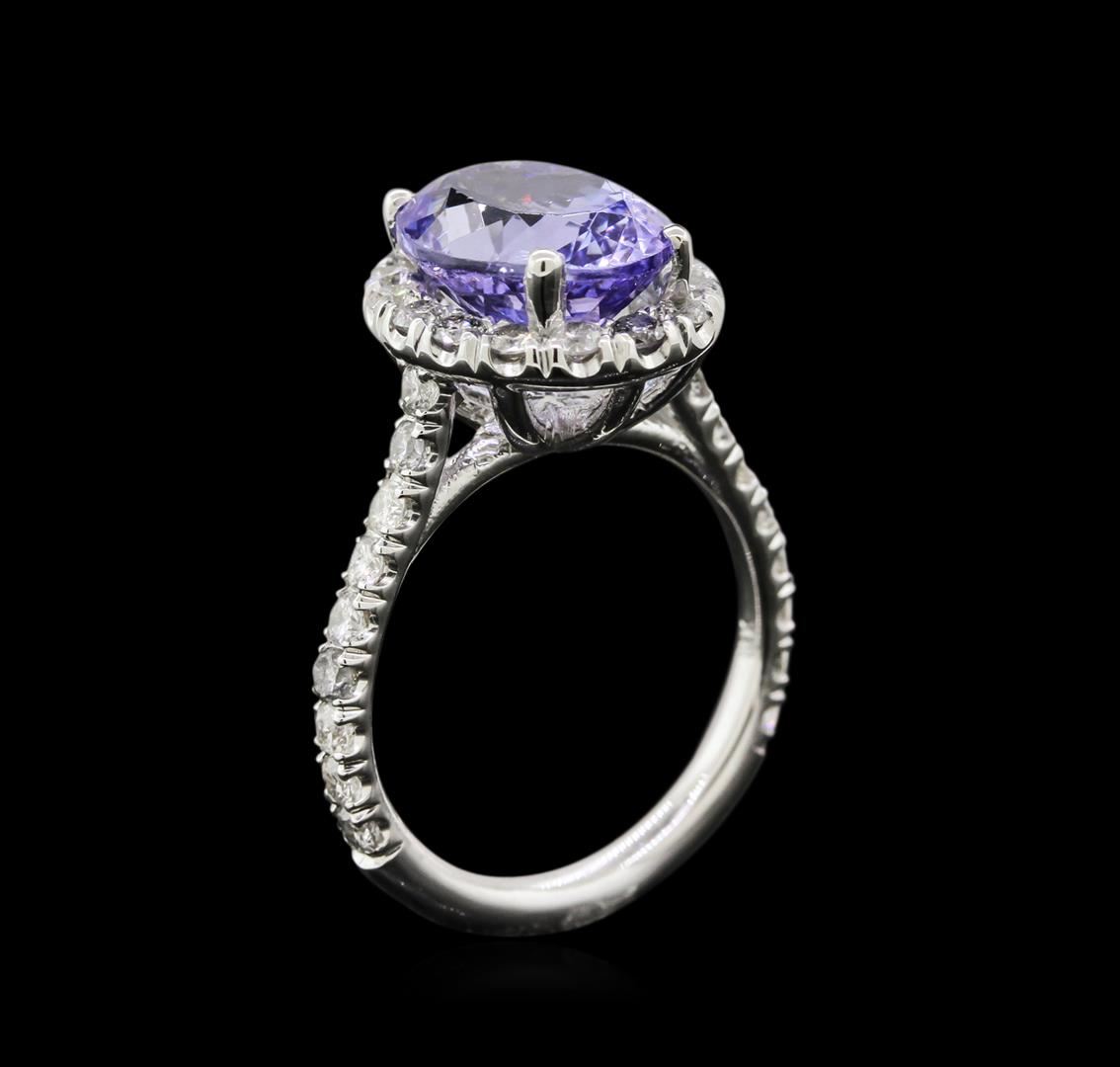 One ring featuring: 14KT white gold weighing 5.11 grams containing one tanzanite with a total weight of 3.28ct and diamonds with a total weight of 1.08ct.