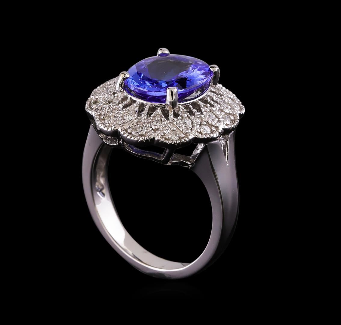 One ring featuring: 14KT white gold weighing 7.10 grams containing one tanzanite with a total weight of 3.28ct and diamonds with a total weight of 0.25ctw.