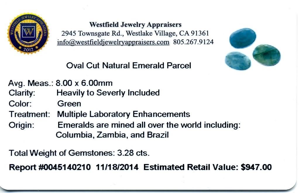 3.28cts. Oval Cut Natural Emerald Parcel Westfield Appraised at $947.00.