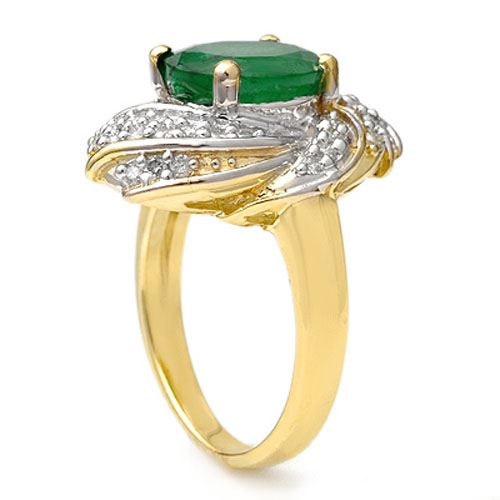 REF-70A9X -13116 ---- 3.29 CTW Emerald & Diamond Ring 14K Yellow Gold ---- Luxury Designer Brand Ring Appraised at $4,700 Certificate Number US13116 14k Yellow gold, Ring Size is 6.5, Ring measuring approx. 7/8" x 11/16" , weighing in total approx. 6.5 grams. Made in the USA and is stamped 14k, Main stone 2.71 carat total weight containing 1 pieces of Intense Green color with AAA quality Oval shape cut Emerald , Stone #2 0.58 carat total weight containing 35 pieces of H-I color with VS/SI quality Round shape cut Diamond