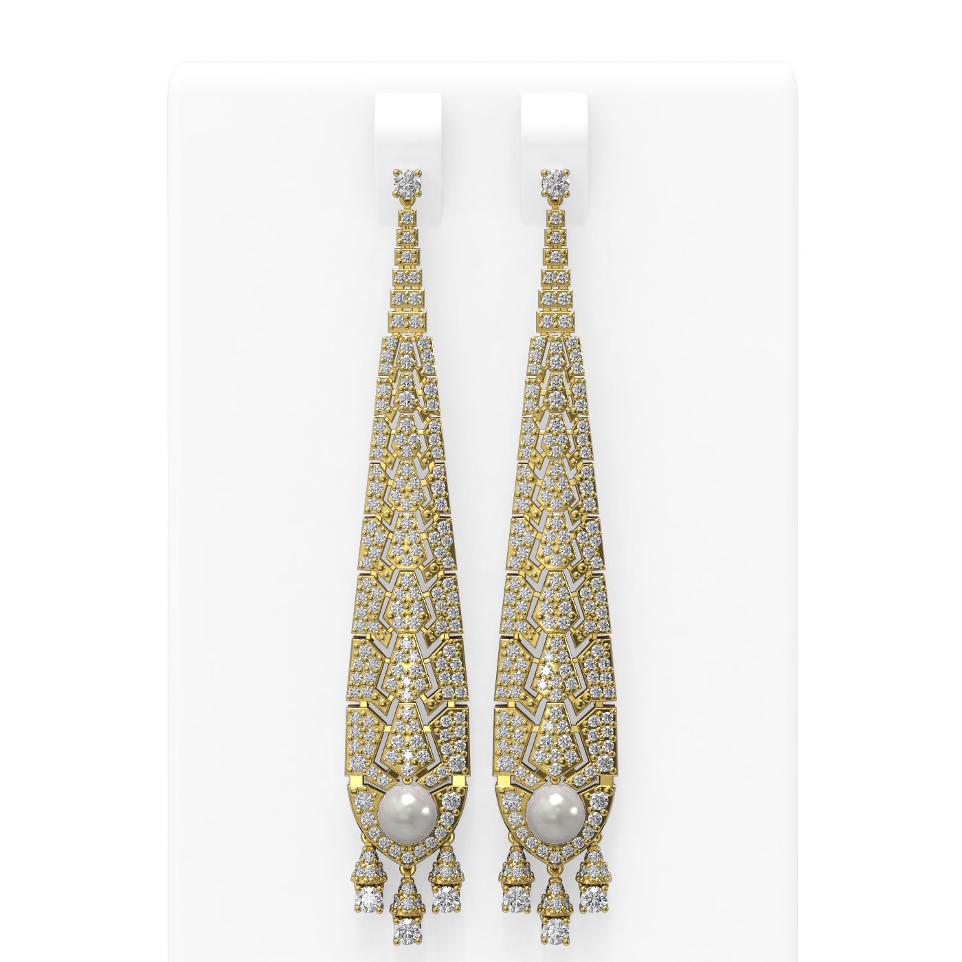 REF-358G9W - SKU: 55576 ---- 3.29 ctw Diamond & Pearl Earrings 18K Yellow Gold