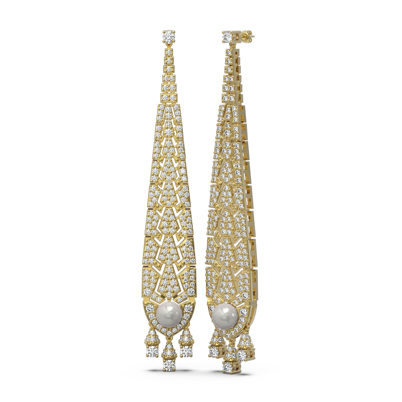 SKU: 55576 ---- 3.29 ctw Diamond & Pearl Earrings 18K Yellow Gold