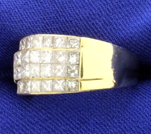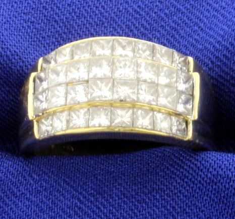 In 18K yellow and white gold, contains 32 .10ct very high quality princess cut diamonds that are VS clarity/G color. Size 7 9.0g