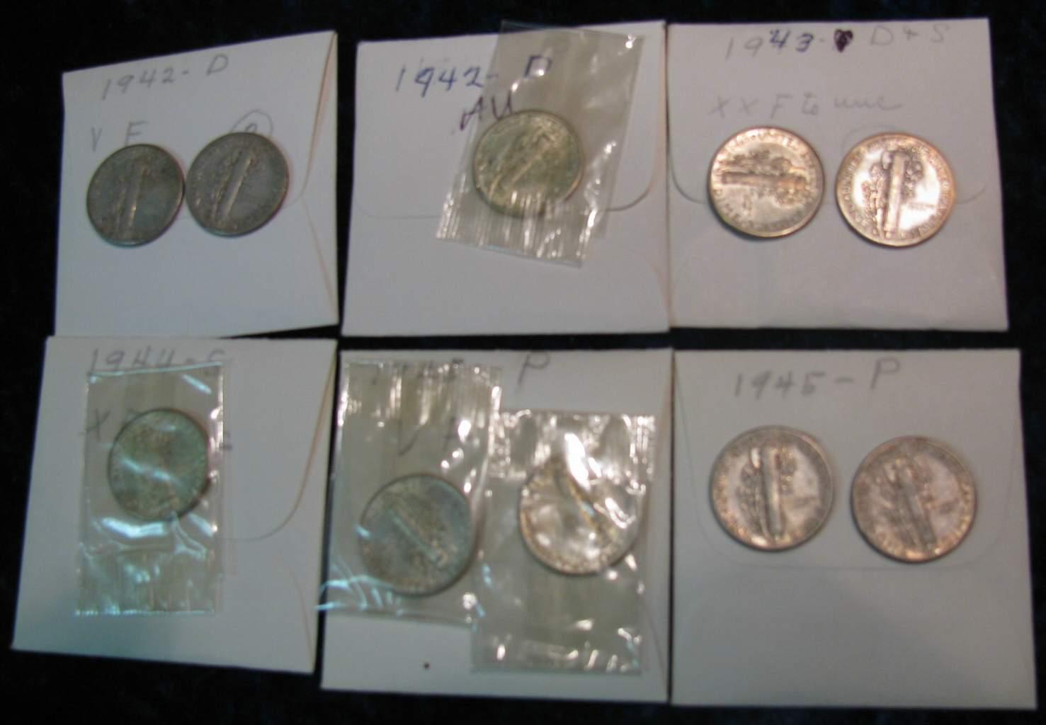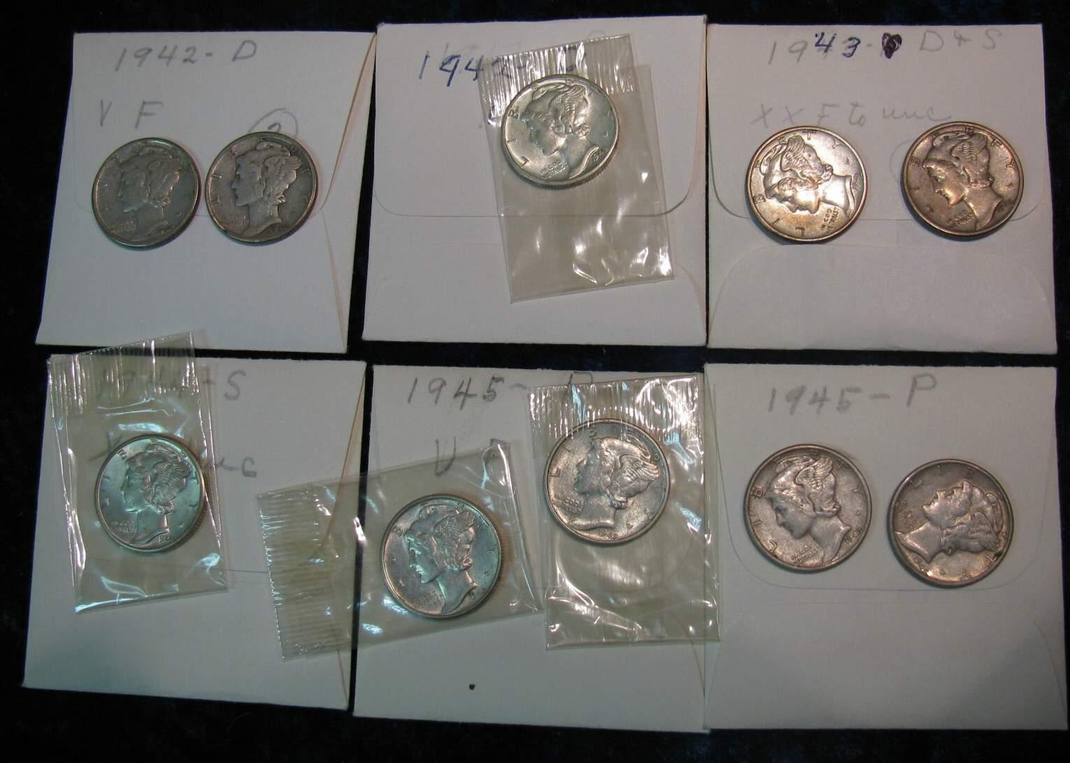 3. (3) 1942 D, 43D, S, 44S, & (4) 45P Mercury Dimes. VF-UNC