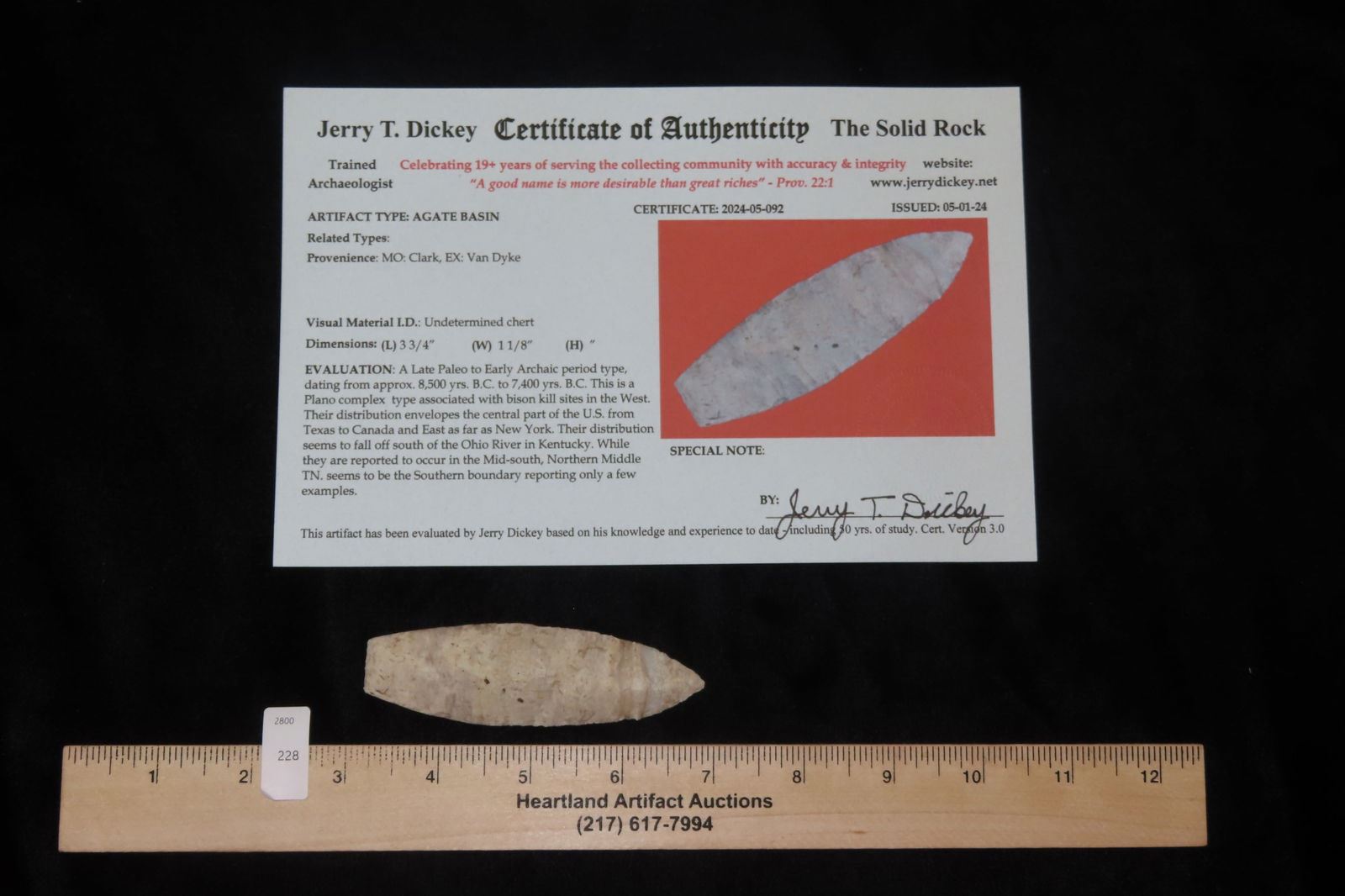 3 3/4& quot; Agate Basin, Dickey COA, Found in Clark Co. Missouri, Ex. Van Dyke