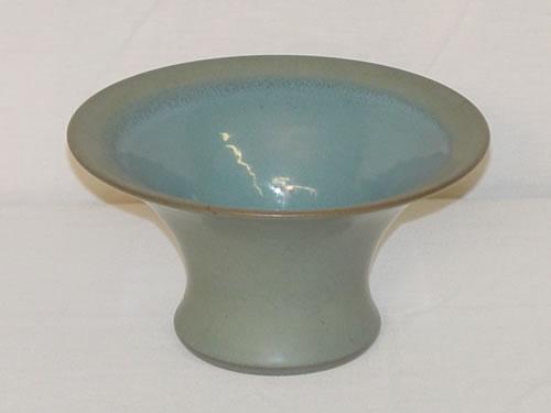 3 3/4" MARBLEHEAD POTTERY MATTE FINISH FLARED TOP VASE W/ GREEN-GREY COLOR-MARKED W/ M P & SHIP MARK