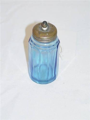 3 3/4" SANDWICH BLUE PANELED CHRISTMAS SALT - TIN CAP WITHOUT AGITATOR;