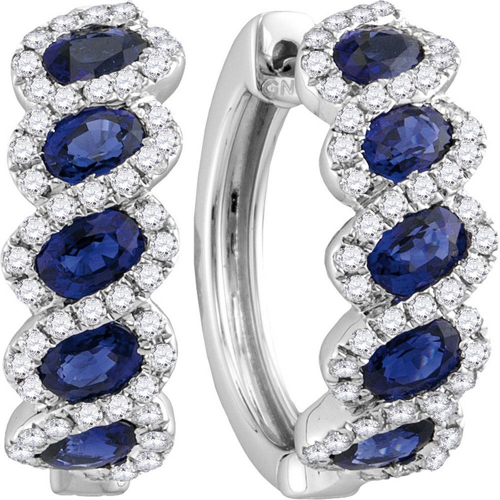 REF-197W6H - 3 & 3/8 CTW Womens Oval Blue Sapphire Diamond Hoop Earrings 18kt White Gold - REF-197W6H