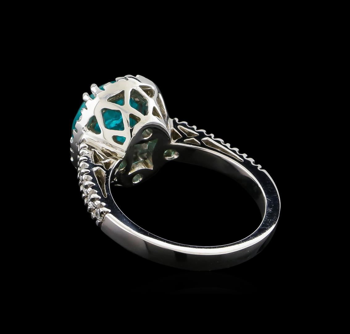 One Ring featuring: 14KT White Gold weighing 5.77 grams containing one Apatite center stone with a total weight of 3.3ct and Diamonds with a total weight of 0.36ct.