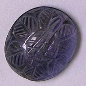 CARVED IOLITE CABOCHON. IT WEIGHTS 3.30 CTS AND MEASURES 10x8 MM
