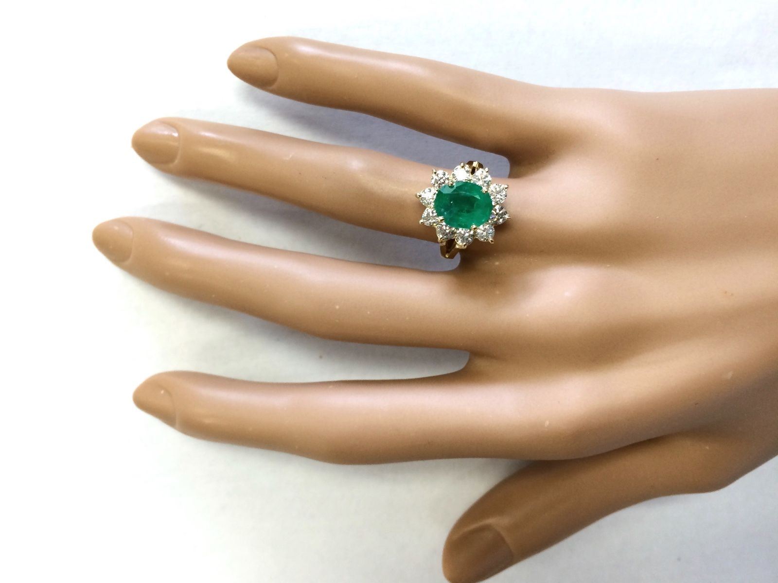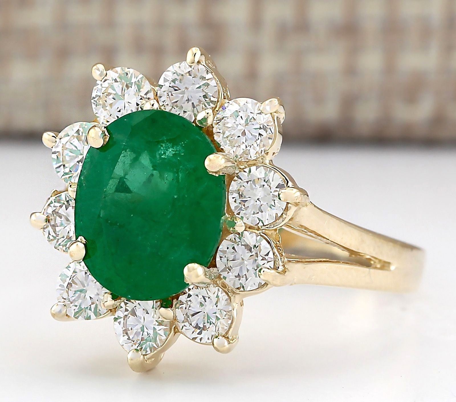 3.30 CTW Natural Emerald And Diamond Ring In 14k Yellow Gold