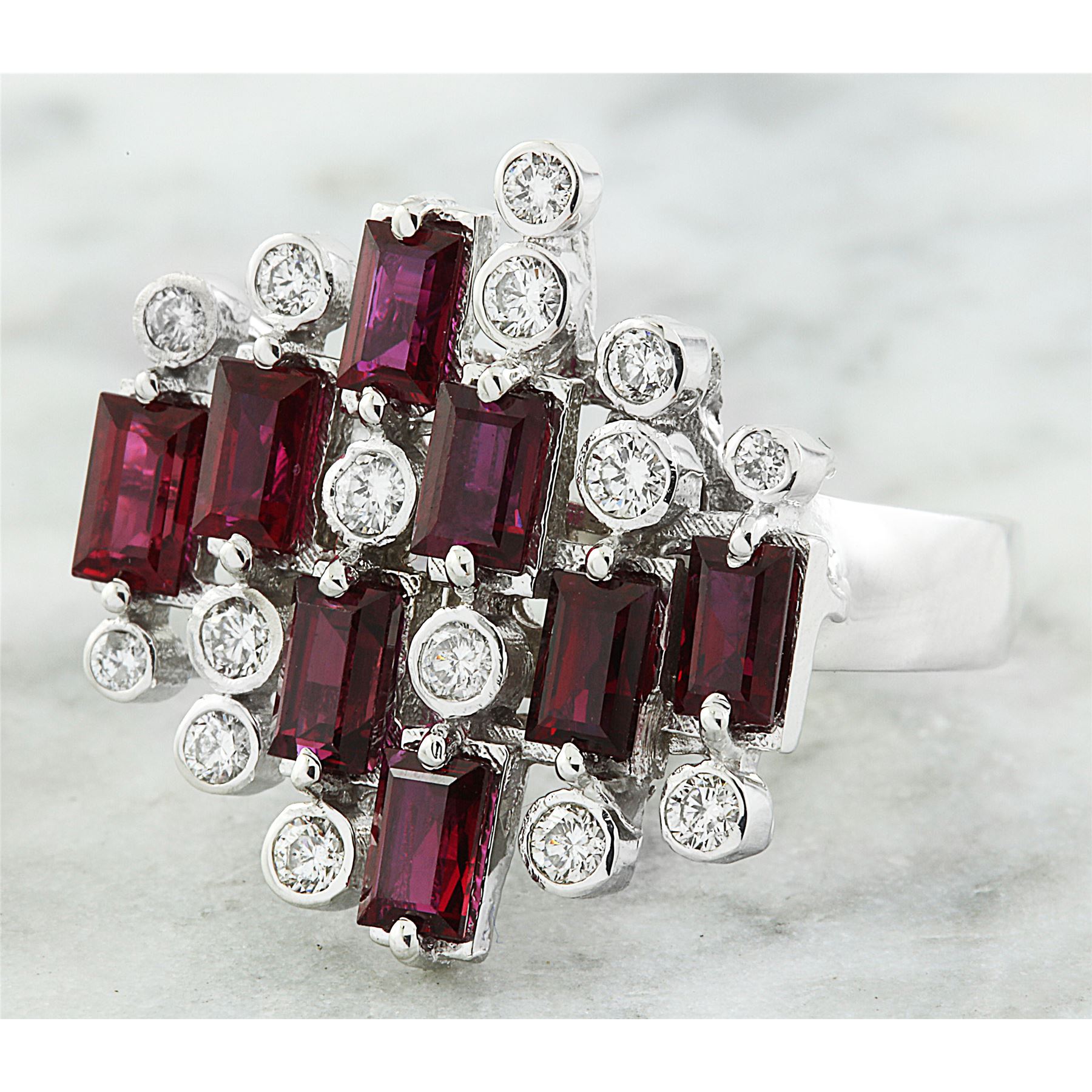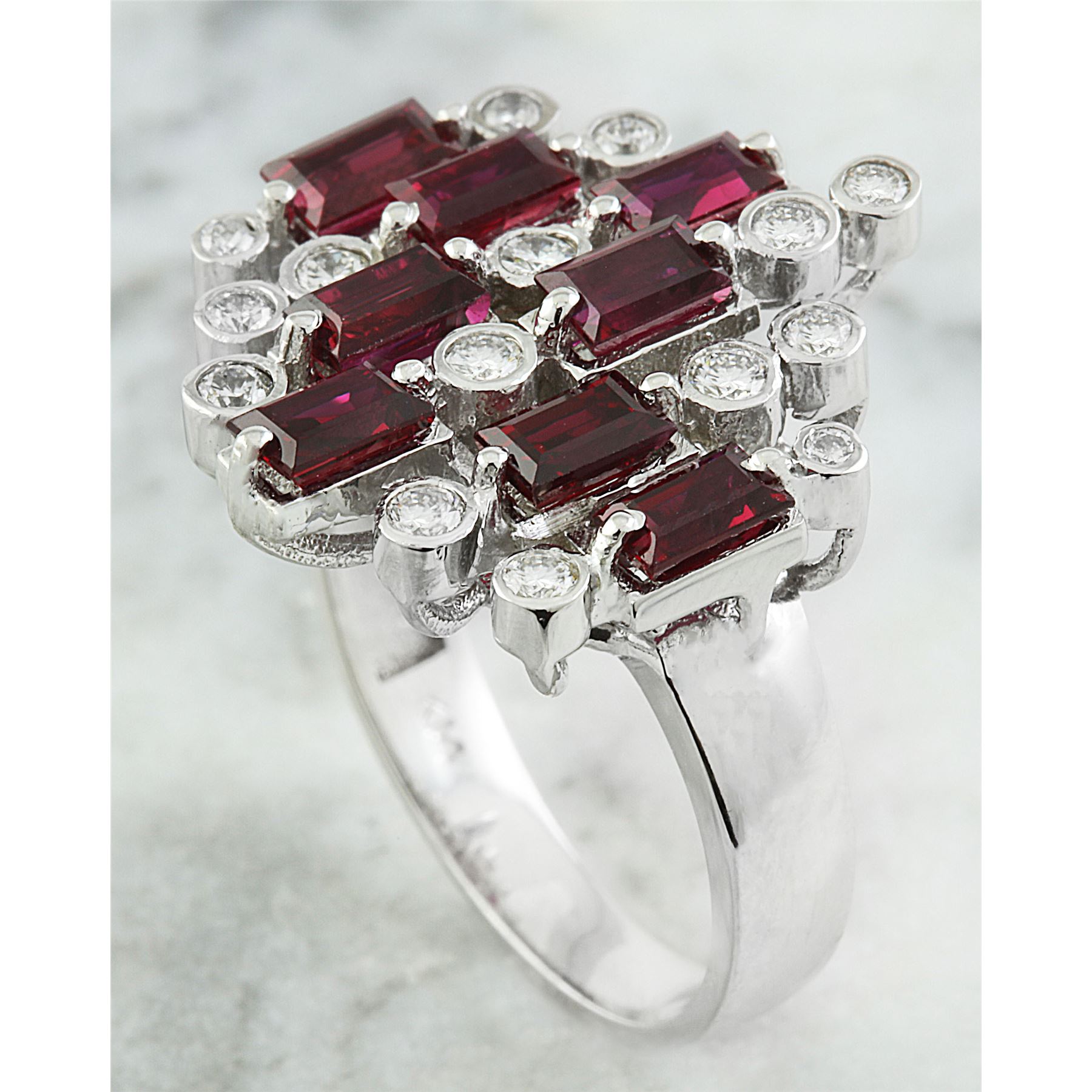 3.30 CTW Ruby 18K White Gold Diamond Ring