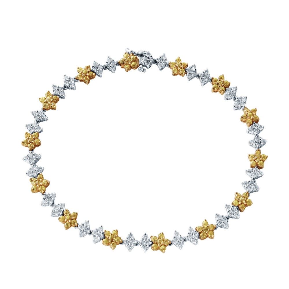 REF-98X9R - JF159456 ---- 3.31 CTW Yellow Sapphire & White Round Diamond Bracelet 14K Two Tone Yellow Gold