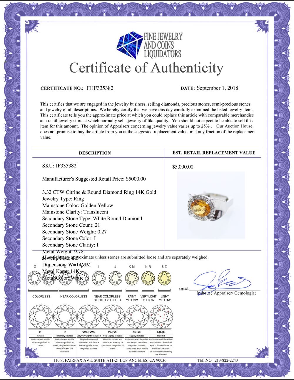 REF-64Y3X - JF335382 ---- 3.32 CTW Citrine & White Round Diamond Ring 14K White Gold