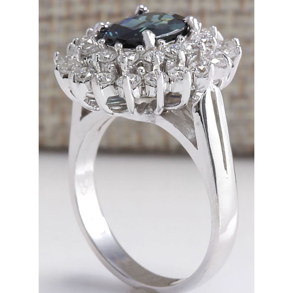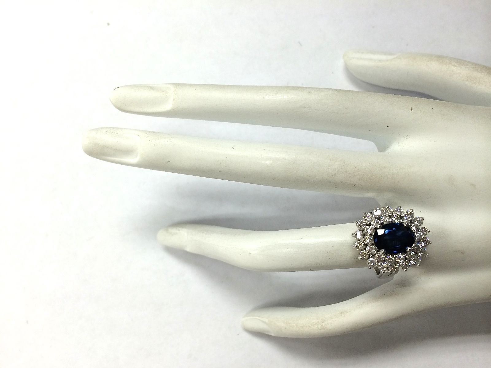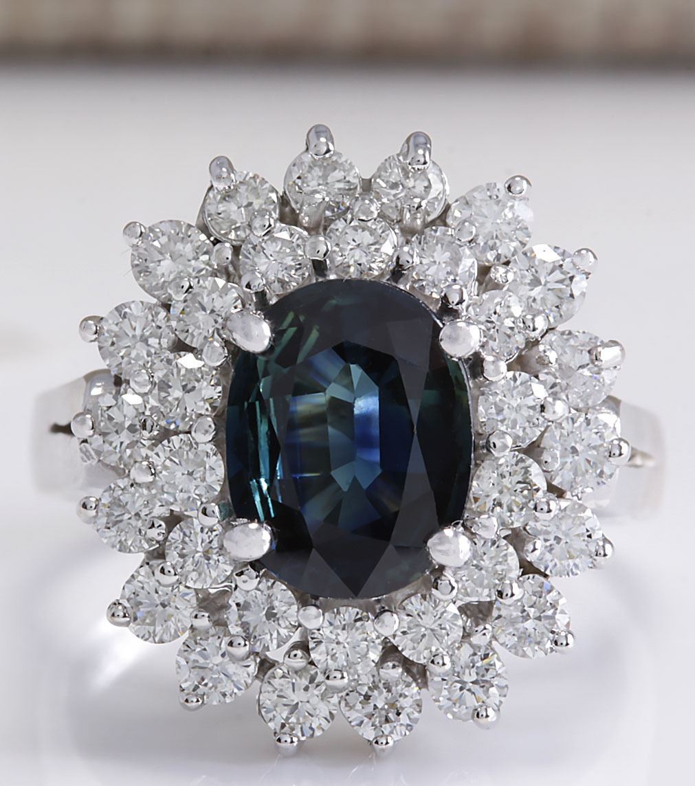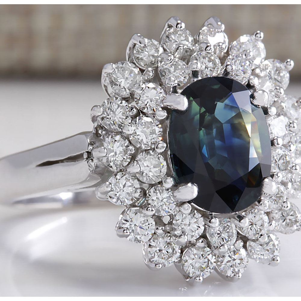 3.32 CTW Natural Blue Sapphire Diamond Ring 18K Solid White Gold