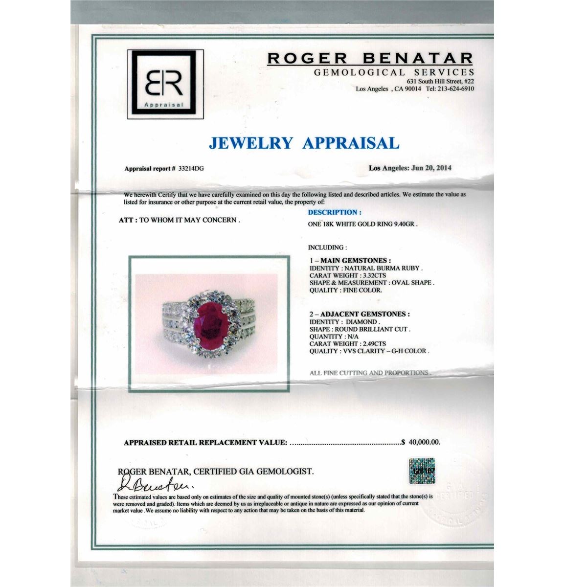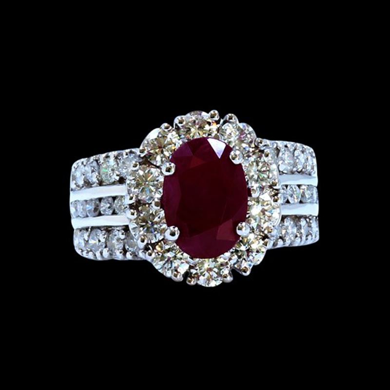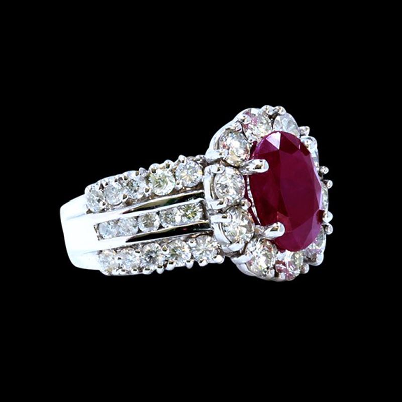 18K WHITE GOLD RUBY RING:9.40GRAM /DIAMOND RD:2.49CT/RUBY:3.32CT NO GLASS FILLED AND BURMA/#GVR1238/ NO LEAD OR GLASS FILLING