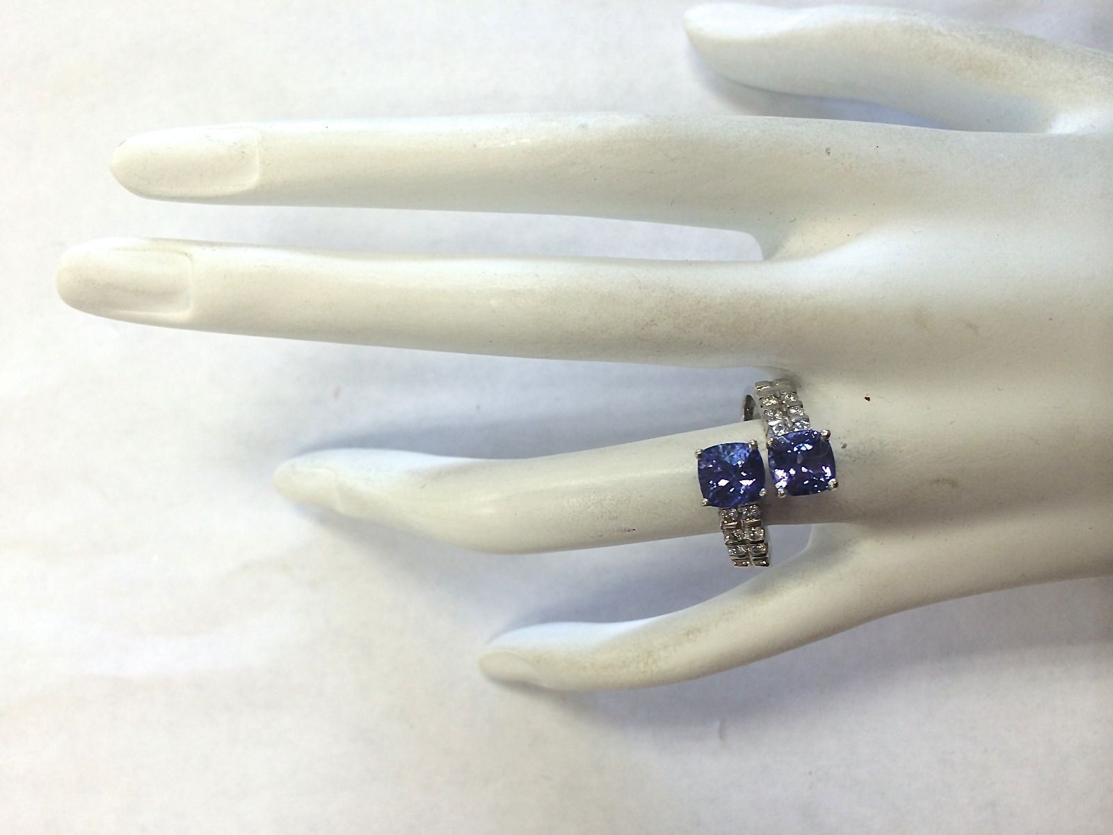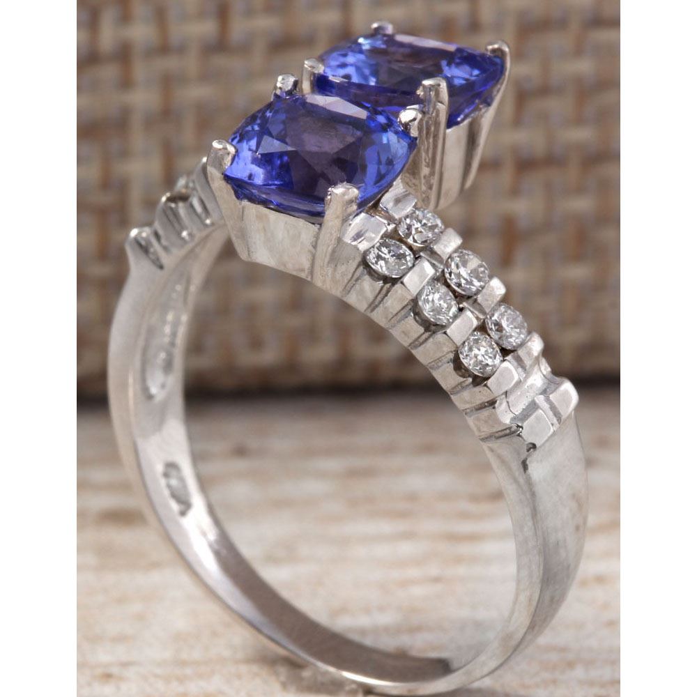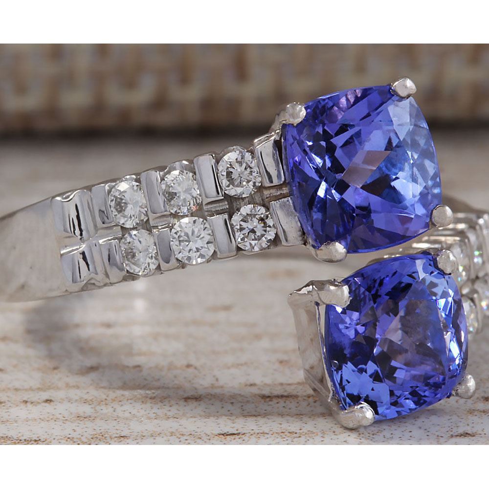 3.33 CTW Natural Blue Tanzanite And Diamond Ring In 18K Solid White Gold