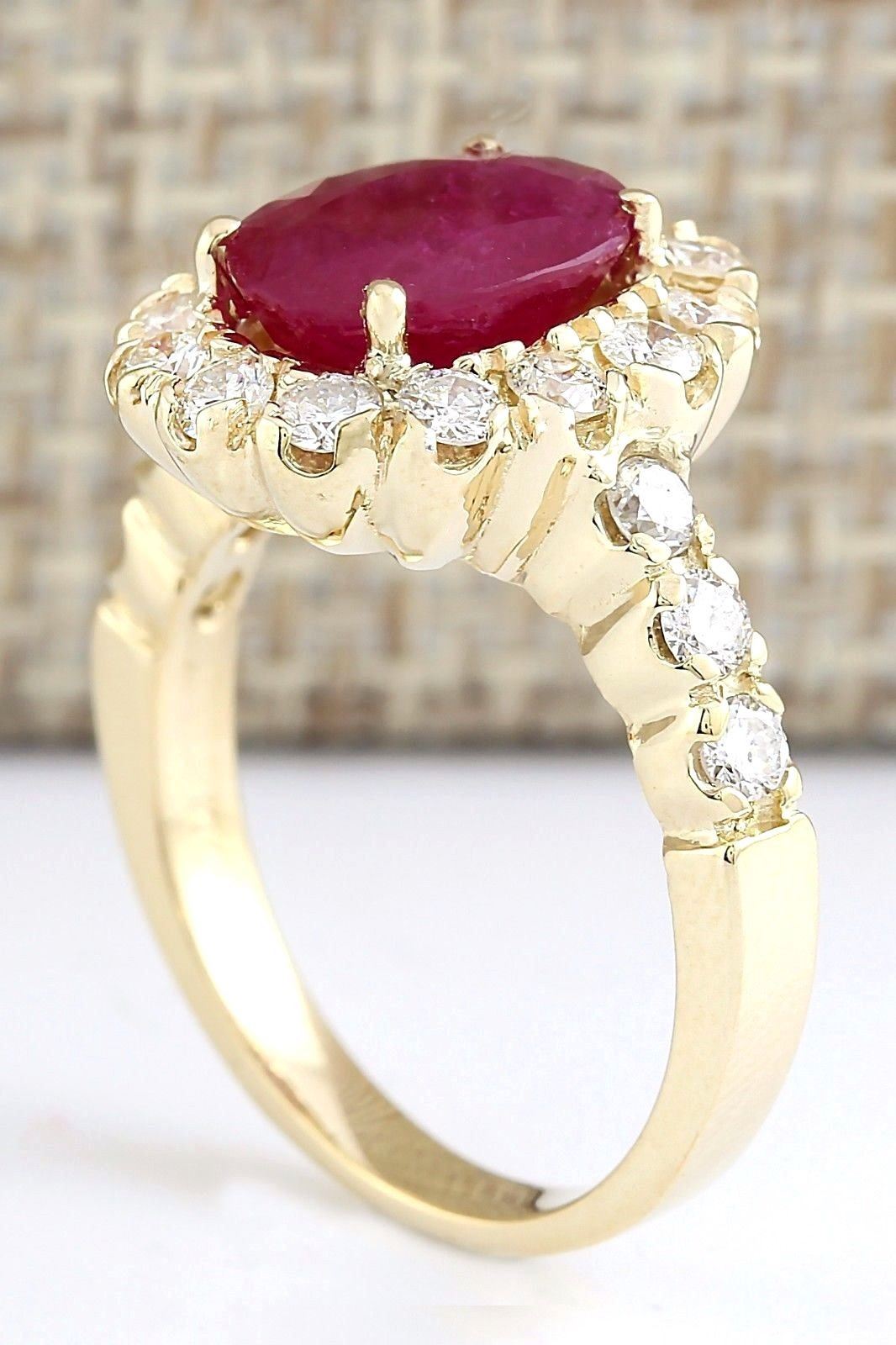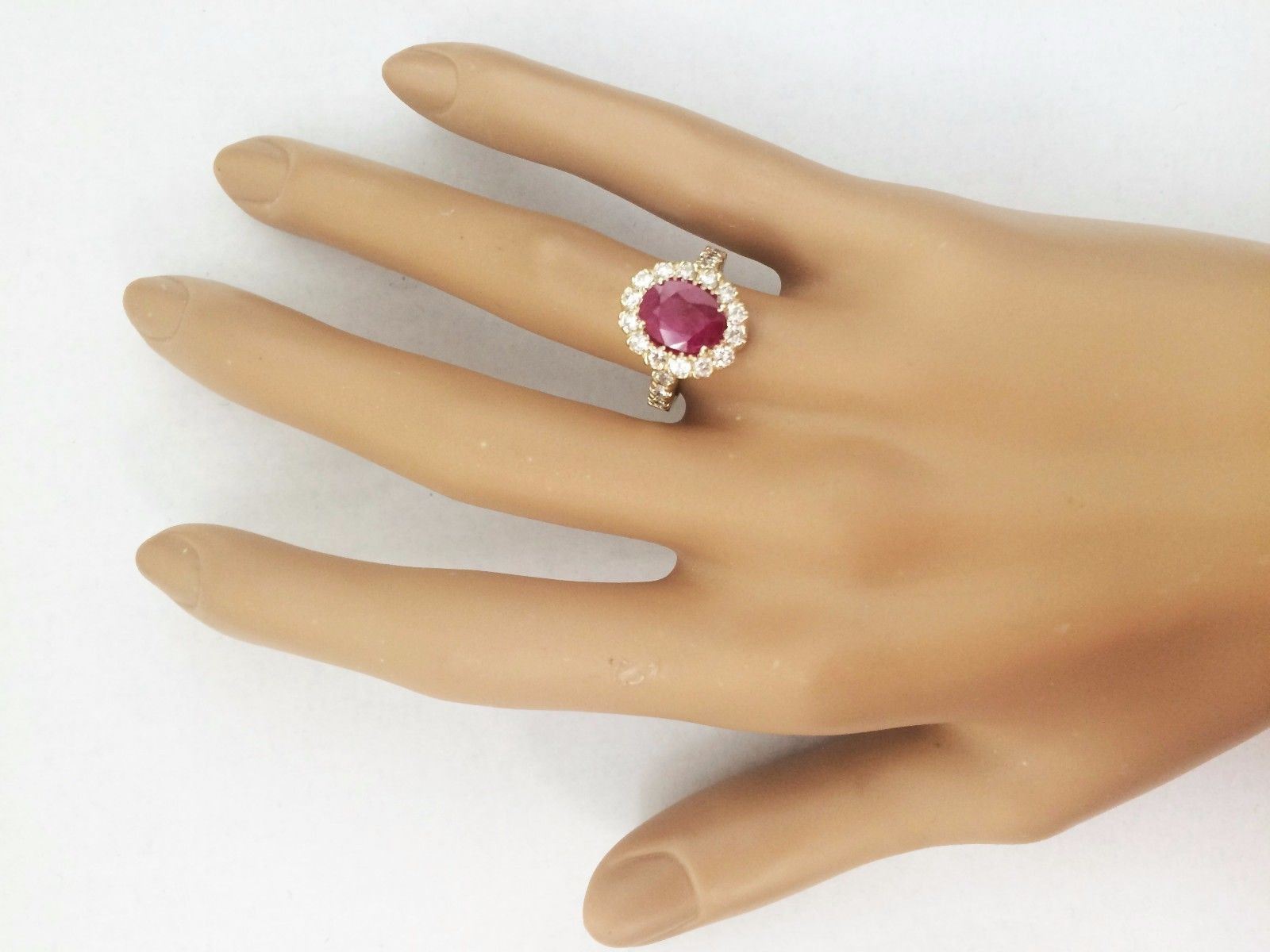 3.33 CTW Natural Ruby And Diamond Ring In 14k Yellow Gold