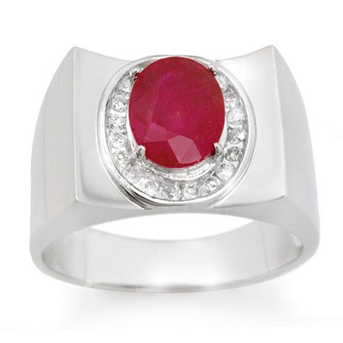 3.33 CTW Ruby & Diamond Mens Ring 10K White Gold ---- Luxury Designer Brand Ring Appraised Retail Price at $4,150 ---- SKU Number US14477 10k White gold Ring Size is 10, Ring measuring approx. 1/2" x 7/16" , weighing in total approx. 8.3 grams. Made in the USA and is stamped 10k, Main stone 3 carat total weight containing 1 pieces of Mid-Opaque-Deep Red color with AAA quality Oval shape cut Ruby , Stone #2 0.33 carat total weight containing 20 pieces of H-I color with VS/SI quality Round shape cut