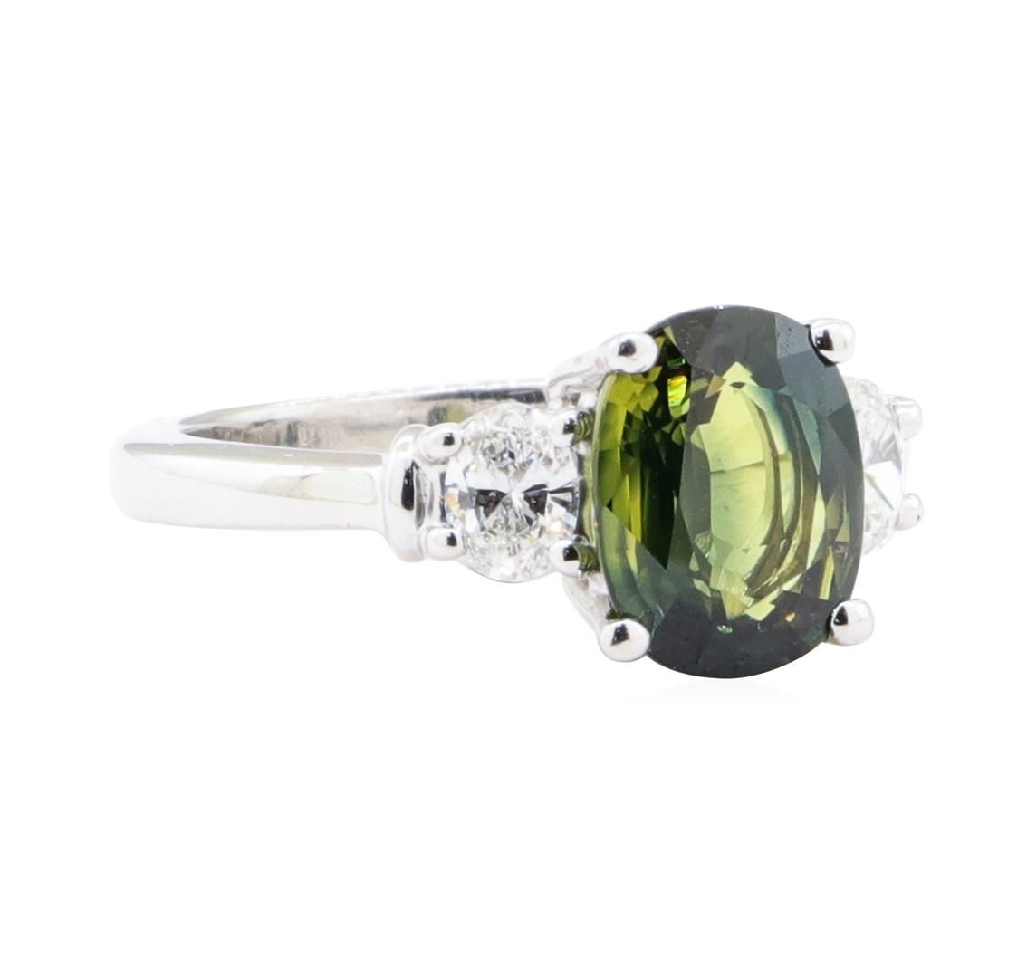 One electronically tested platinum lady's cast fashion ring with a three stone motif with a bright polish finish. The featured lady's ring has a shank measuring 2.30 millimeters wide. Identified with markings of 'PT 950'. Condition is new, good workmanshi