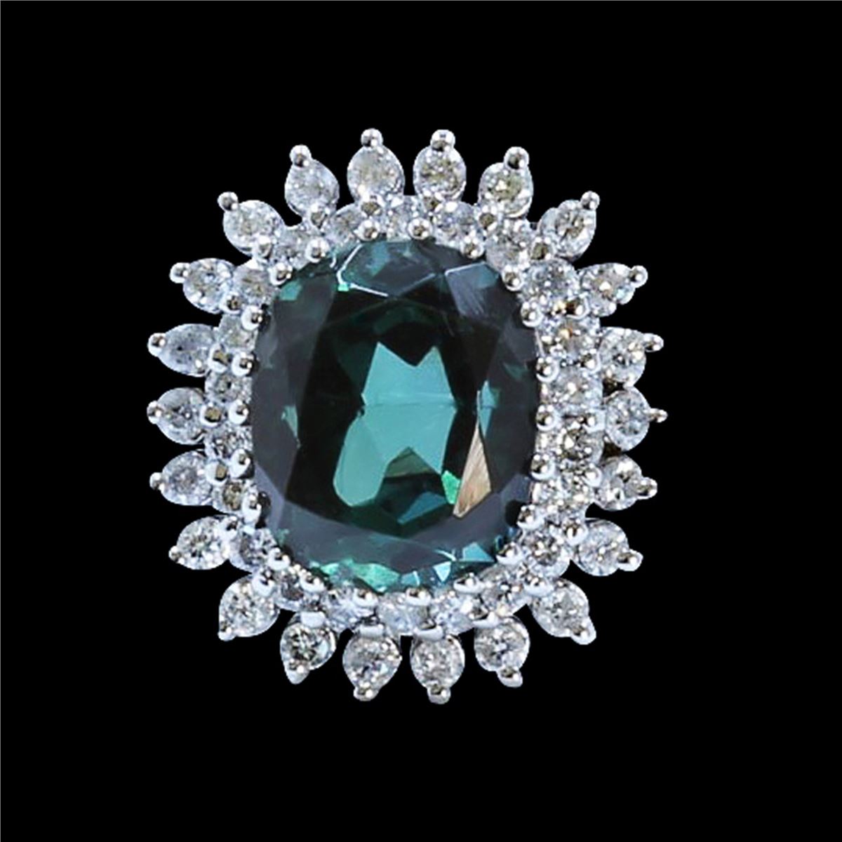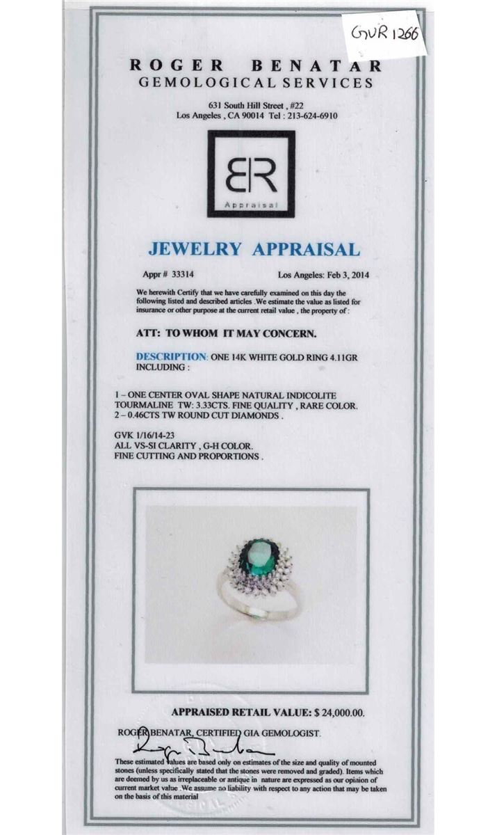 14K White GOLD NATURAL INDICO TOURMALINE RING:4.11GRAM /INDICOLITE TOURMALINE: 3.33CT/DIAMOND RD: 0.46CT/#GVR1266