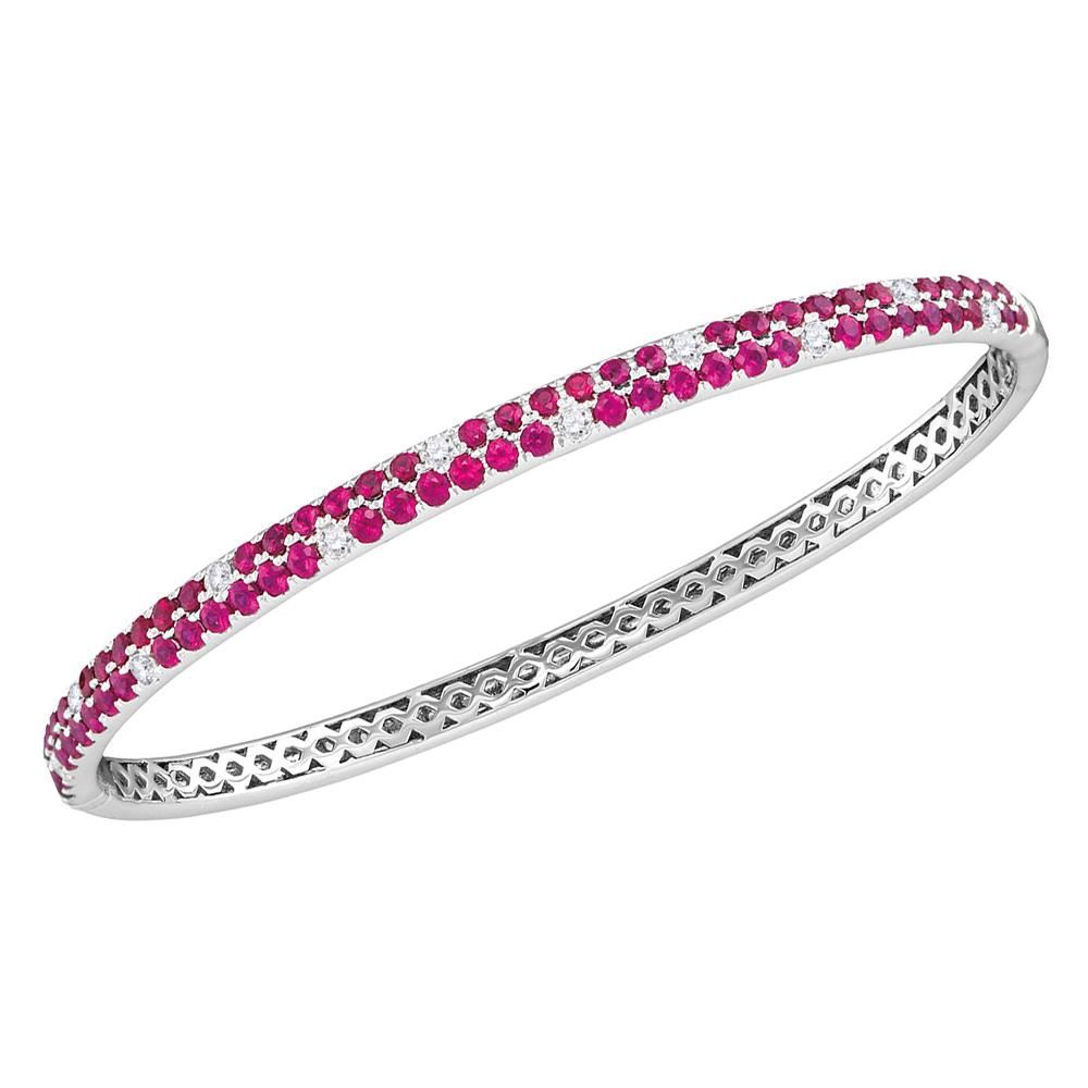 REF-232K4W- SKU: GD108295 ---- 3.34 CTW Ruby Diamond Double Row Bangle Bracelet 18KT White Gold