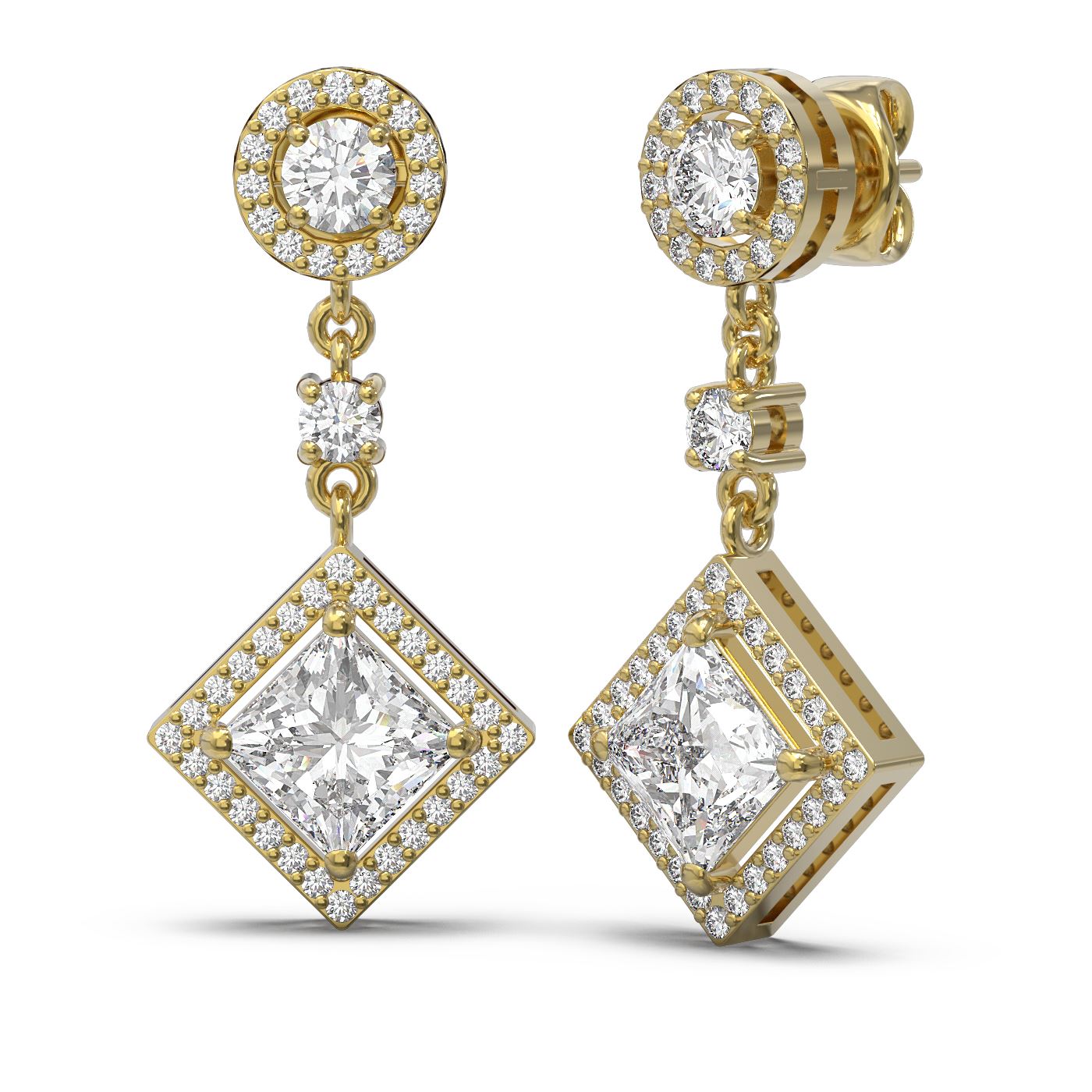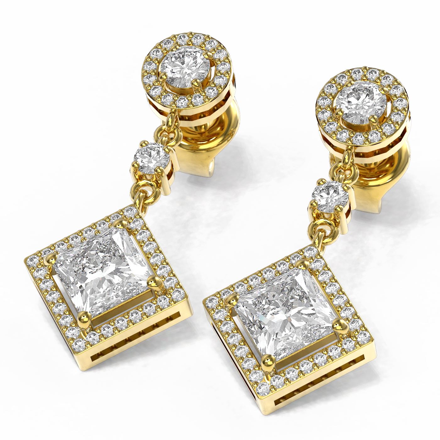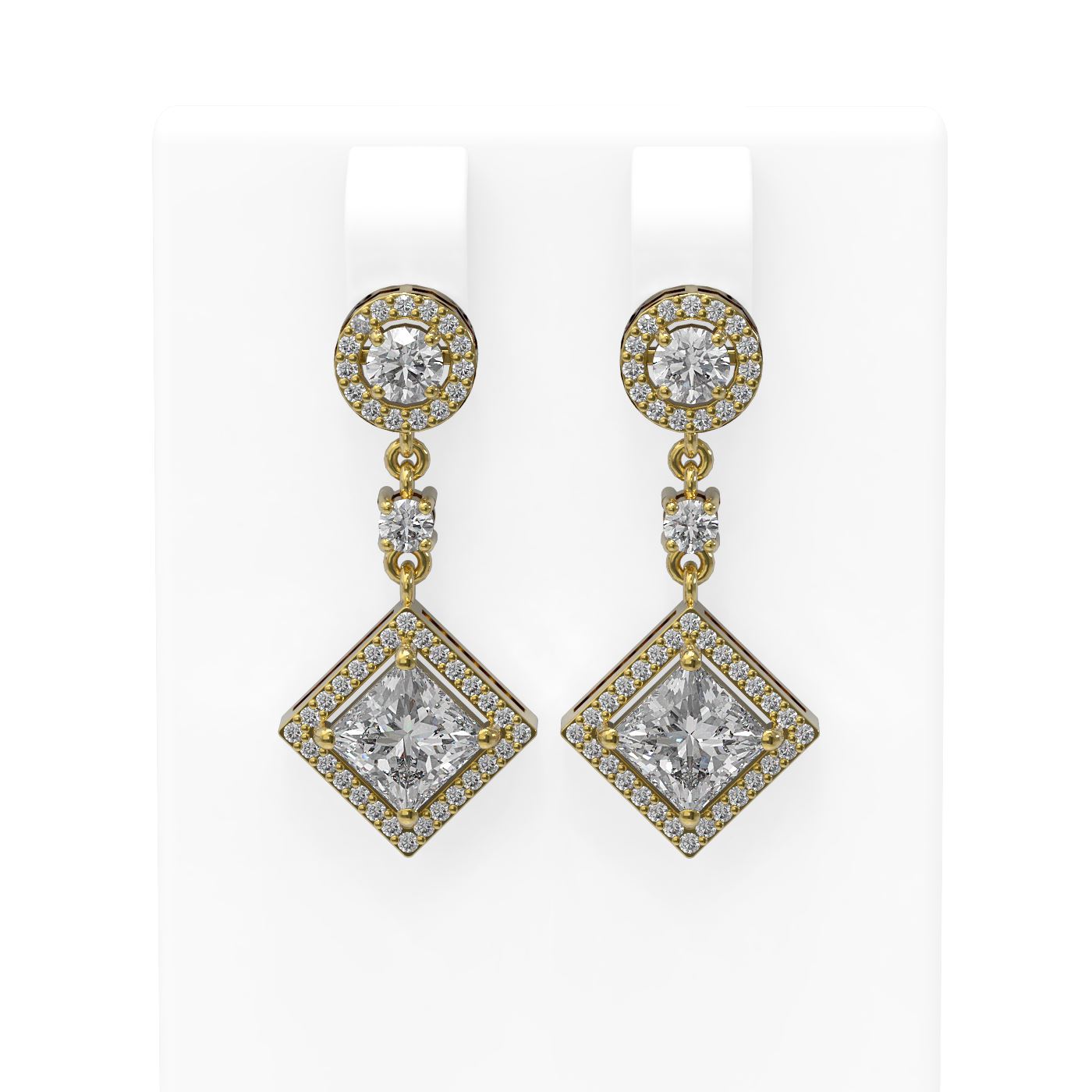 REF-737G3W - SKU: 56710 ---- 3.34 ctw Princess Diamond Earrings 18K Yellow Gold