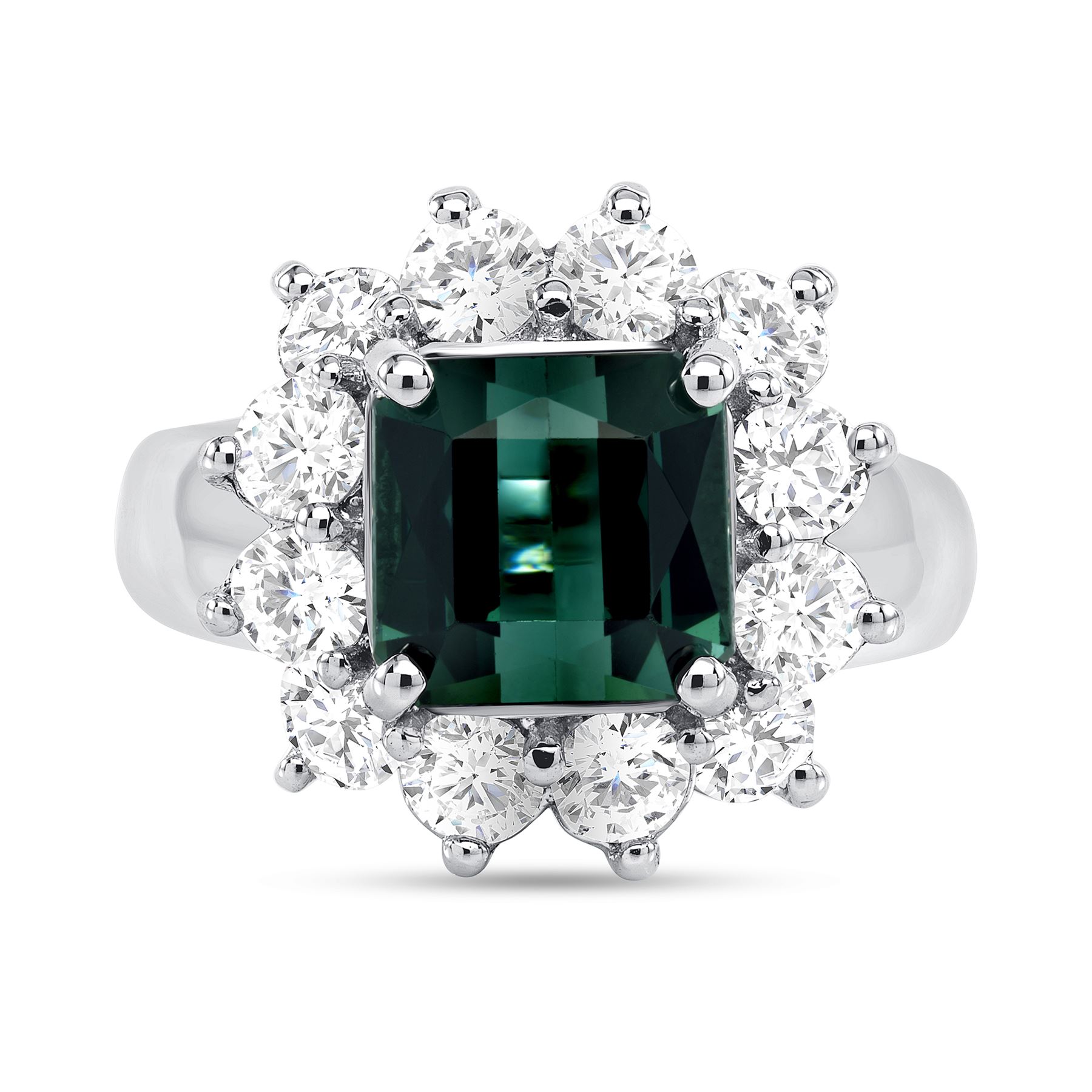 14k White Gold : 6.6gm / Green Tourmaline : 3.34ct / Diamond : 1.5ct / #LTOUR21