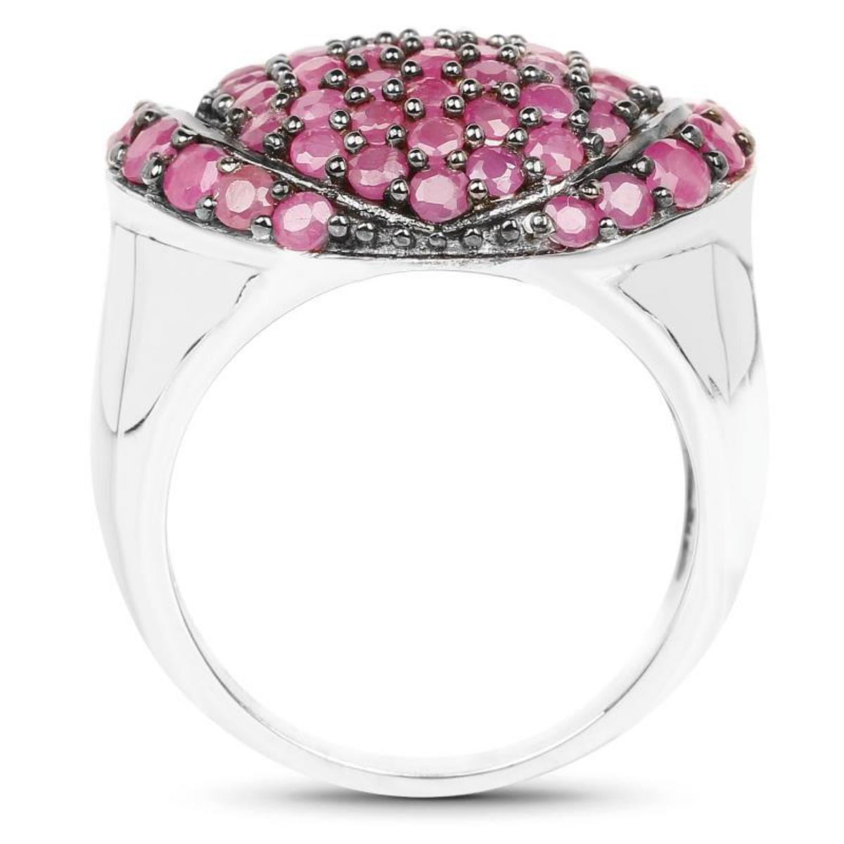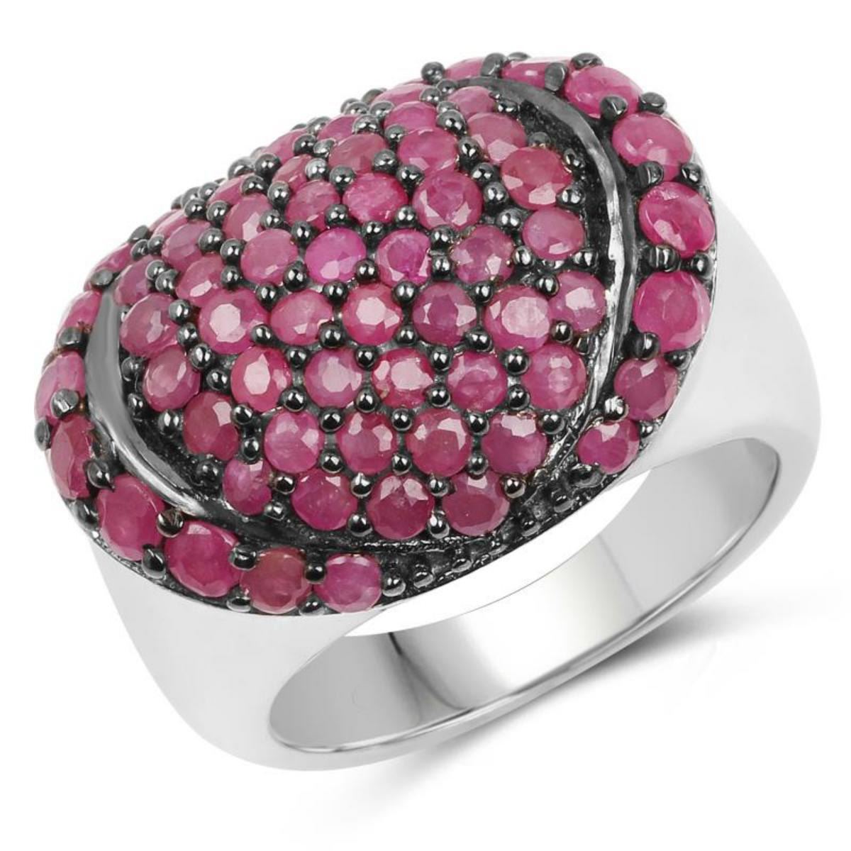 This is a 3.35 Carat Genuine Ruby .925 Sterling Silver Ring (size 7) measuring 0.69 Inches in length with a total gross weight of 11.86 (gm) | Gemstone Info: Ruby: Round/2.50mm 10/0.80 ctw & Ruby: Round/1.90-2.00mm 53/2.39 ctw & Ruby: Round/1.70mm 4/0.16 ctw | Metal Info: .925 Sterling Silver weighing 11.19 (gm).