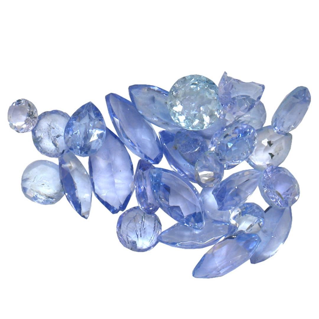Twenty-nine mixed cut natural tanzanites exact total weight 3.36ct., clarity is eye clean, type I, medium dark, very slightly grayish, bluish violet color, (GIA bV 6/3), cut is good. Transmitting light with no distortion, transparent. Color grade is an average for the group. Graded in the setting. Tanzanite is a very rare gemstone that is only found in the country of Tanzania. Originally discovered in 1967. Tiffany & Company, named the stone Tanzanite. It is found in the Usumburu Mountains that border the Umba Valley of northern Tanzania. Tanzanite occurs in gray, brown, violet, blue, reddish-purple, & green. The gem is interesting because of its exceptional pleochroism. Rotated in different directions a tanzanite will exhibit multiple changes of color. Tanzanite has a low tolerance to ultrasonic cleaning, and should not be cleaned using this method. Westfield Appraised at $325.00.